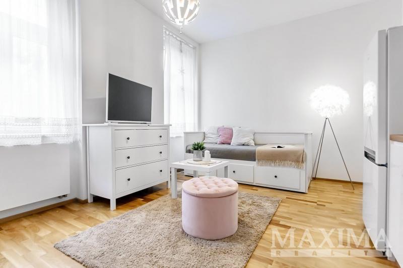 Nabízíme krásný, světlý byt 1+kk (25m2), sklep 5m2, Praha 8 - Libeň. Byt se nachází v 1. NP a nabízí se kompletně zařízený. Kuchyňská linka je vybavena varnou deskou, el. troubou, lednicí s mrazákem, dále se v pokoji se nachází jednolůžko s úložným prostorem, komoda, jídelní stůl a židle. Koupelna je se sprchovým koutem, WC. V předsíni se nachází úložná skříň, kde je umístěna pračka. Na podlaze v pokoji je plovoucí podlaha, v koupelně a na chodbě dlažba. Přepis el. energie na nájemníka.