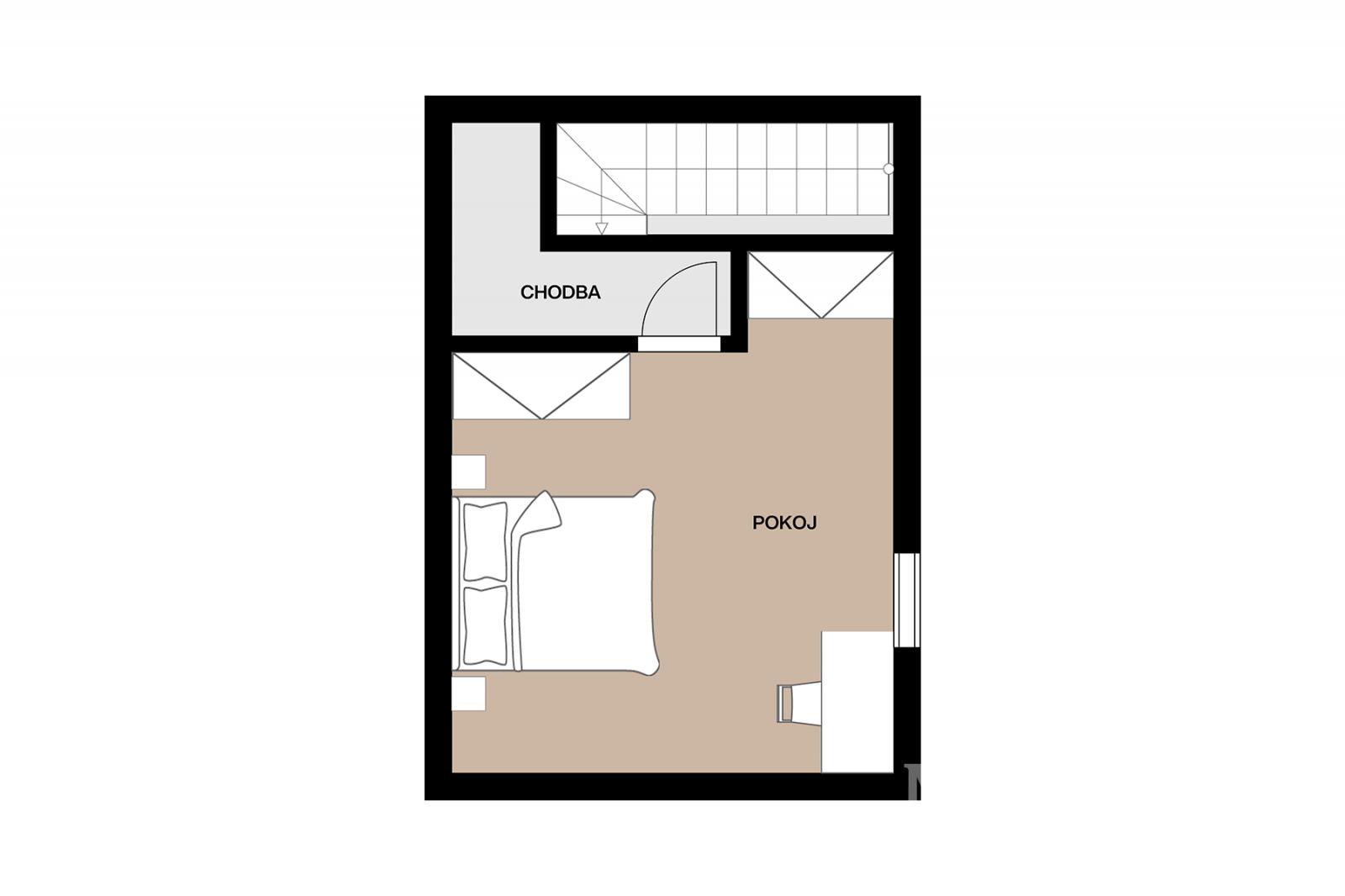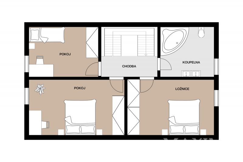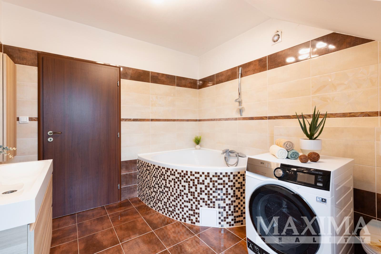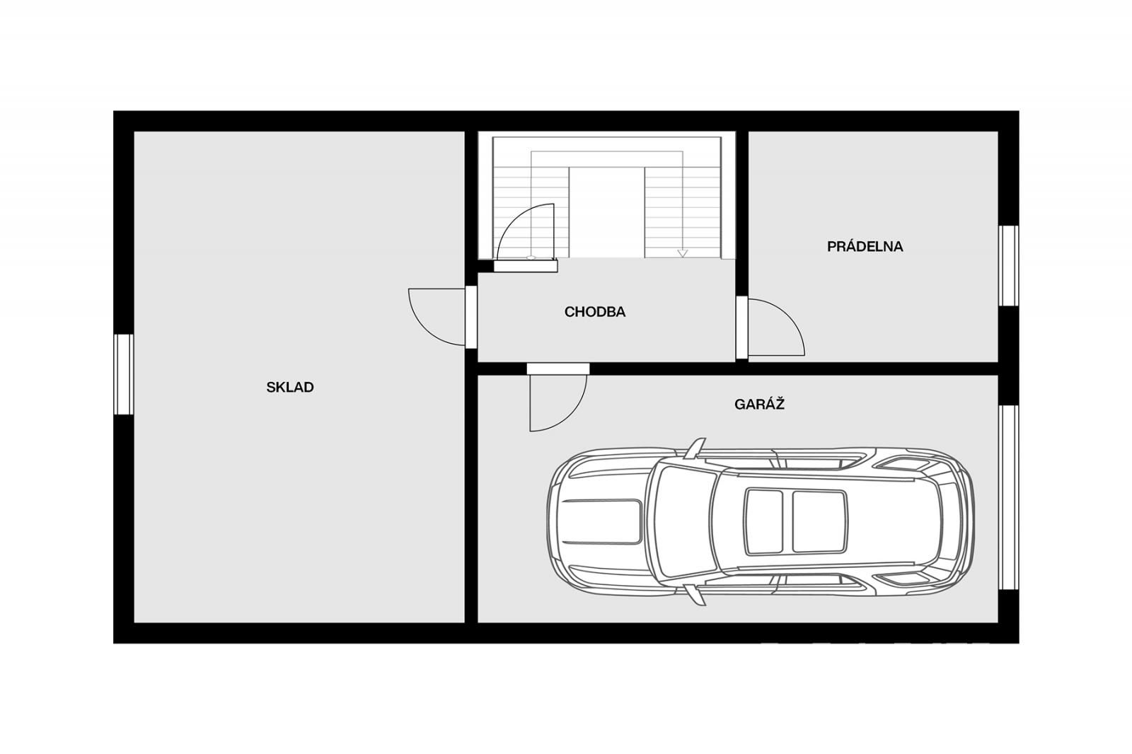 V podzemním podlaží se nachází garáž, prádelna a vytápěná místnost s oknem, která může sloužit jako další pokoj, pracovna nebo hobby místnost. Ze samotné garáže lze rovněž vytvořit obytný prostor, případně je možné vybudovat saunu či relaxační zónu. Přízemí tvoří prostorný obývací pokoj s kuchyní a vstupem na terasu, koupelna s toaletou a sprchovým koutem. V prvním patře jsou další 3 samostatné pokoje a druhá koupelna s vanou. V podkroví se pak nachází další pokoj, je zde také možnost zřízení malé kuchyňky, jsou zde totiž vyvedeny rozvody studené a teplé vody i odpad.