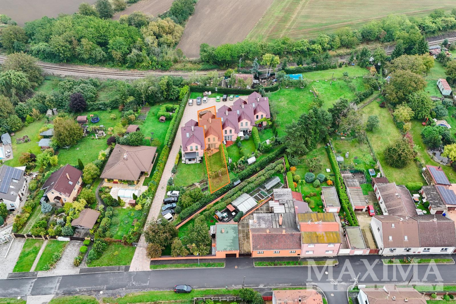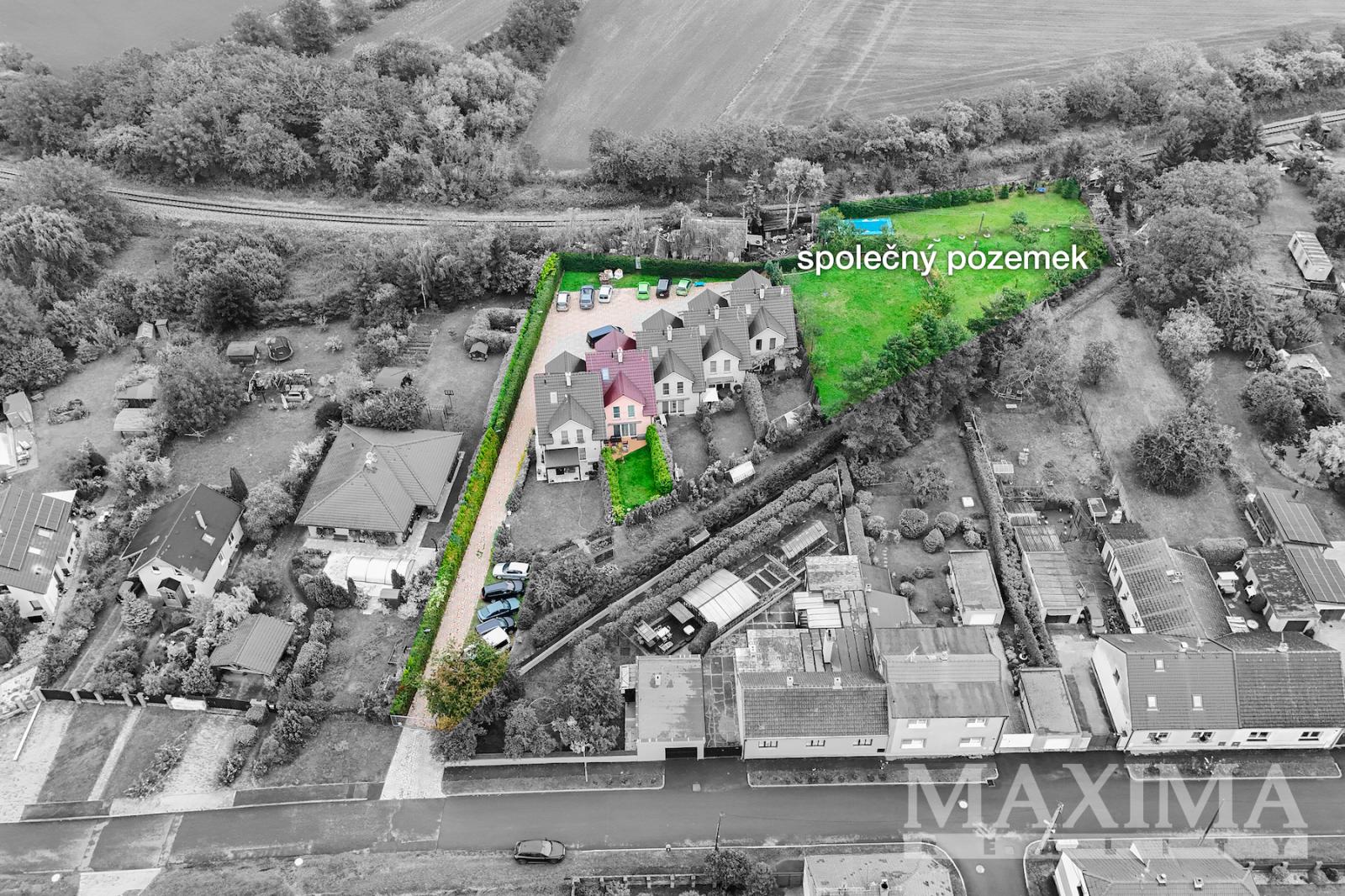 Jedná se o bezpečnou a klidnou rezidenční lokalitu, dům se nachází v oploceném areálu pěti řadových domů. Domy mají k dispozici velký pozemek a zahradu s ovocnými stromy, ideální na dětské hry či posezení se sousedy.