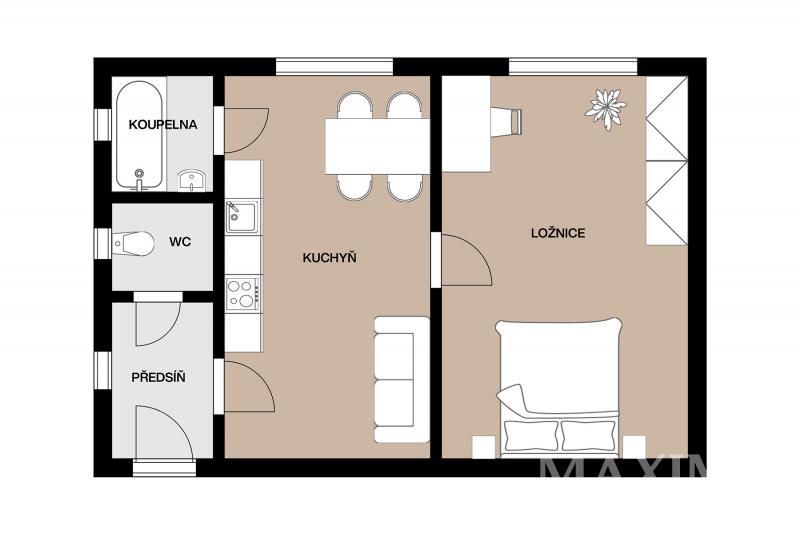 Volný ihned. Byt je vhodný pro dvě osoby.