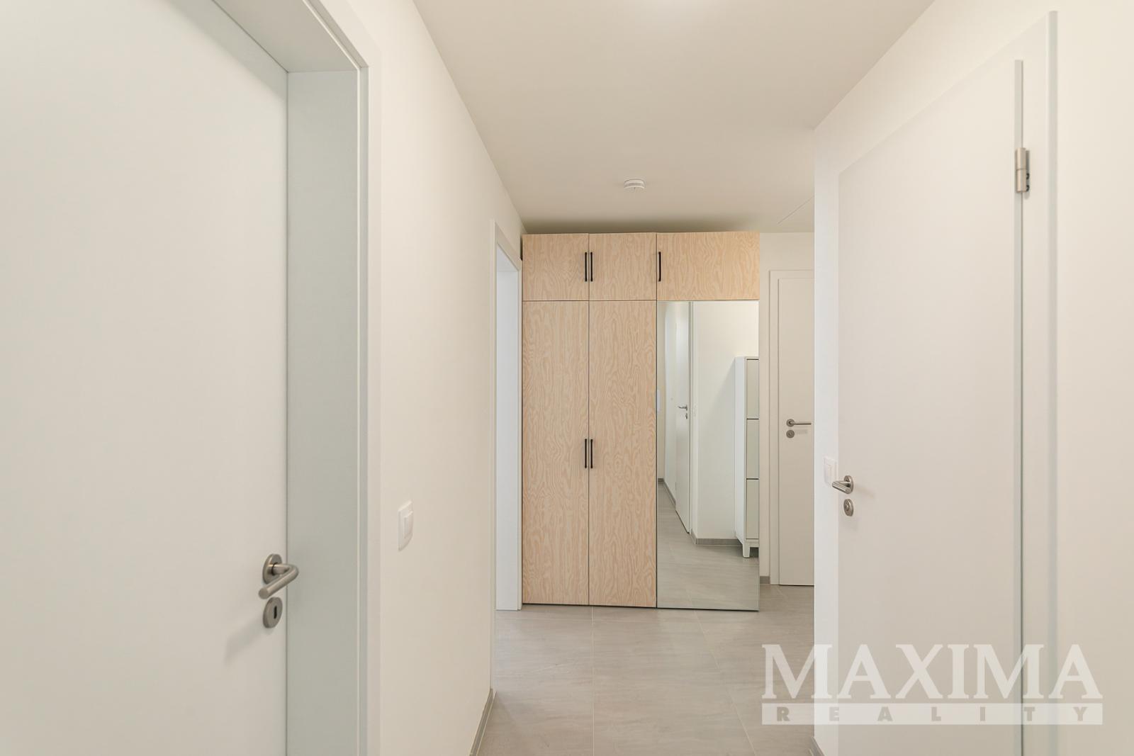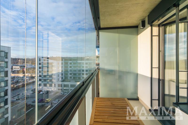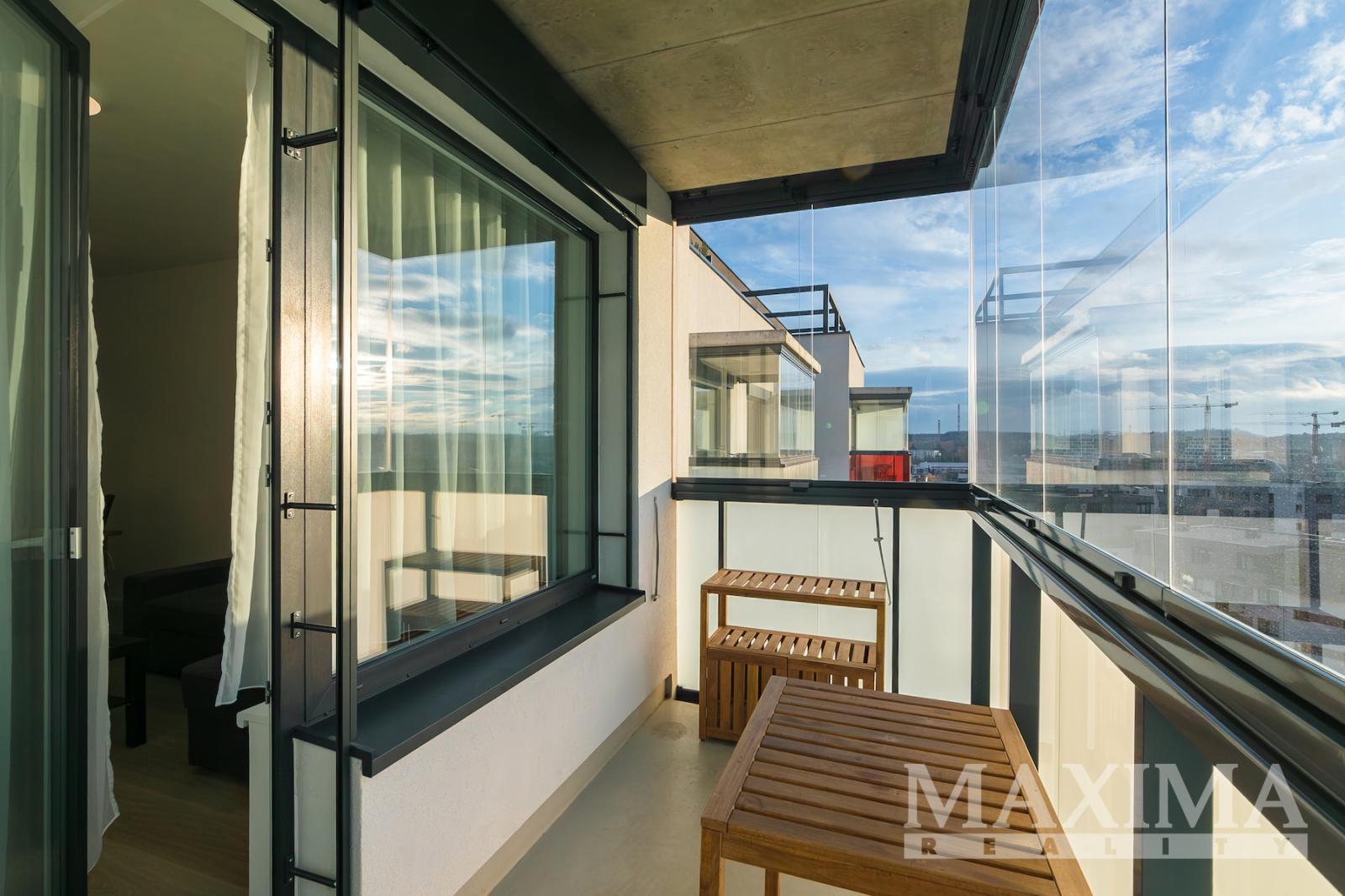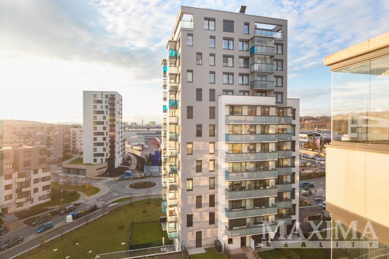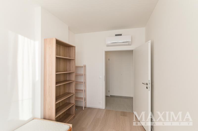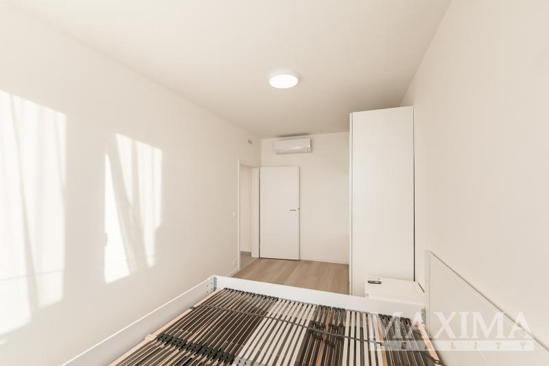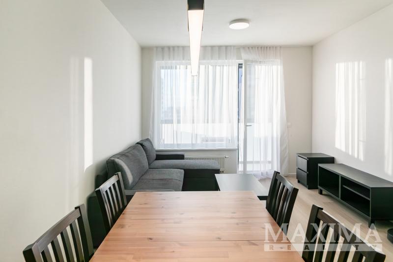 Nabízíme k pronájmu kompletně zařízený byt 3+kk s balkonem o rozloze 58 m2 a parkovacím stáním. Byt se nachází v 7. patře novostavby v Praze 9 - Hloubětín a disponuje zaskleným balkonem s hezkým výhledem. Dále je předností bytu prostorná předsíň, kde jsou vestavěné šatní skříně a botník, obývací pokoj a kuchyňským koutem. Moderní kuchyňská linka je vybavená vestavnými spotřebiči, v obývacím pokoji je sedačka, konferenční stolek, televizní skříňka, jídelní stůl se čtyřmi židlemi. V ložnici je manželská postel bez matrací a velké šatní skříně, v pokoji postel a otevřená knihovna. V koupelně je vana se zástěnou, pračka a sušička. Obývací pokoj i obě ložnice jsou vybaveny klimatizací, na všech oknech jsou nainstalovány elektronicky ovládané venkovní žaluzie.