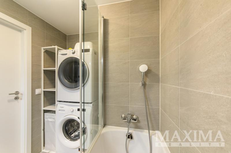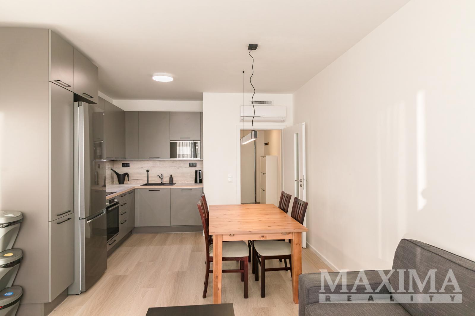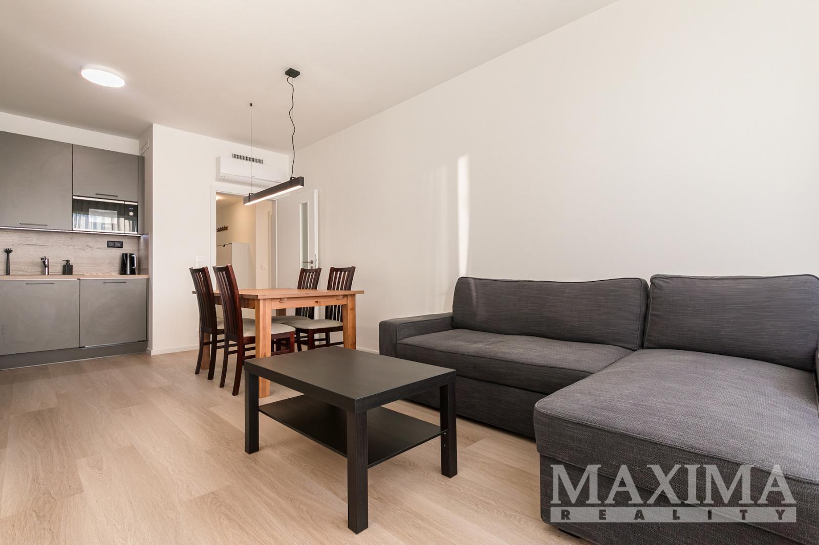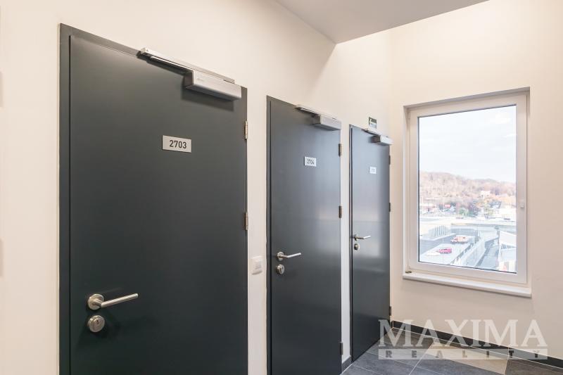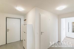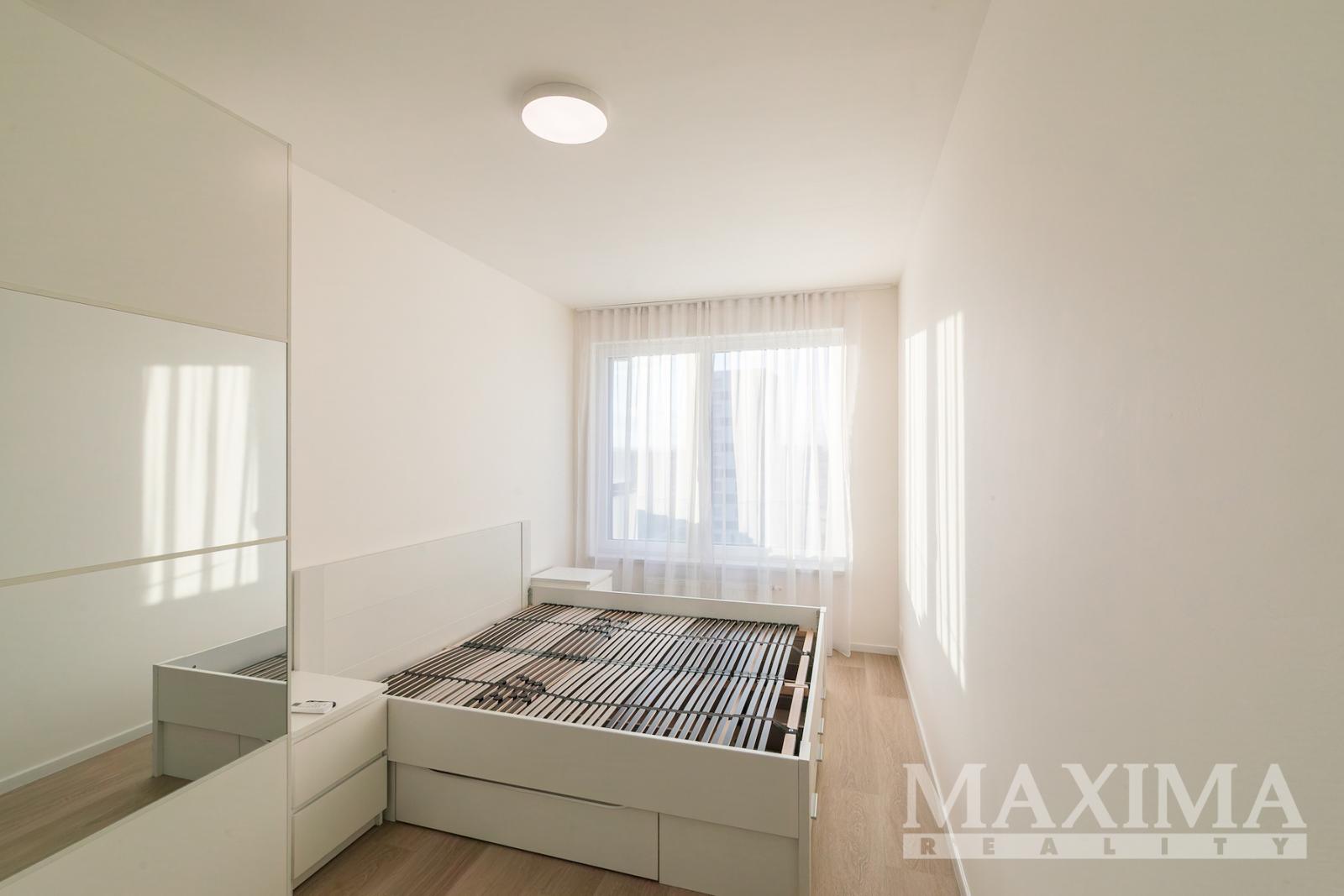 Nabízíme k pronájmu kompletně zařízený byt 3+kk s balkonem o rozloze 58 m2 a parkovacím stáním. Byt se nachází v 7. patře novostavby v Praze 9 - Hloubětín a disponuje zaskleným balkonem s hezkým výhledem. Dále je předností bytu prostorná předsíň, kde jsou vestavěné šatní skříně a botník, obývací pokoj a kuchyňským koutem. Moderní kuchyňská linka je vybavená vestavnými spotřebiči, v obývacím pokoji je sedačka, konferenční stolek, televizní skříňka, jídelní stůl se čtyřmi židlemi. V ložnici je manželská postel bez matrací a velké šatní skříně, v pokoji postel a otevřená knihovna. V koupelně je vana se zástěnou, pračka a sušička. Obývací pokoj i obě ložnice jsou vybaveny klimatizací, na všech oknech jsou nainstalovány elektronicky ovládané venkovní žaluzie.