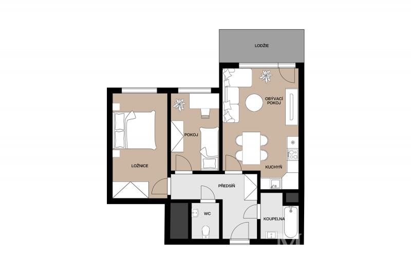 K bytu náleží parkovací stání v podzemní garáži, které je součástí nájemného a komora na patře. Navzdory nevysoké metráži je byt prostorově dobře koncipován a prostor je velice prakticky využitý.