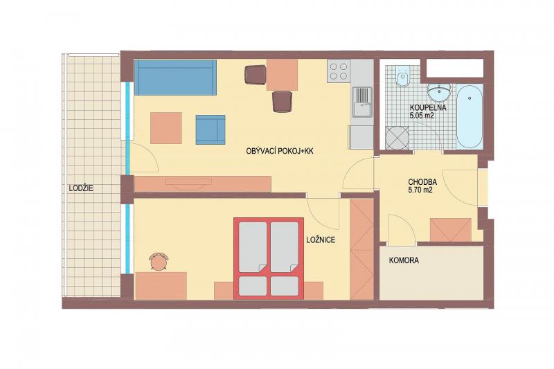 Pronájem bytu 2 + kk, 52 m2
