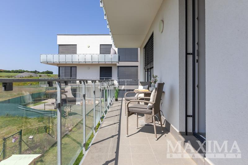 Dominantou bytu je prostorný balkon o výměře 13 m2 s příjemným výhledem do okolní zeleně, ideální k posezení nebo odpočinku.