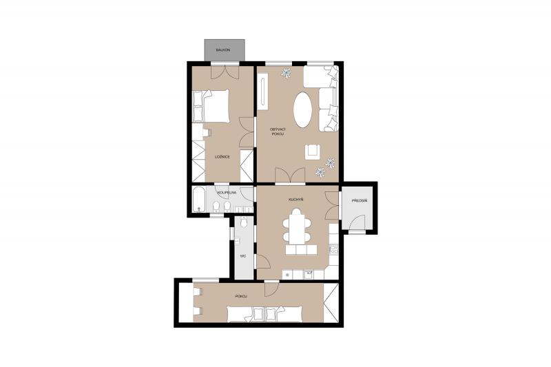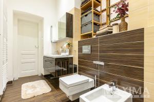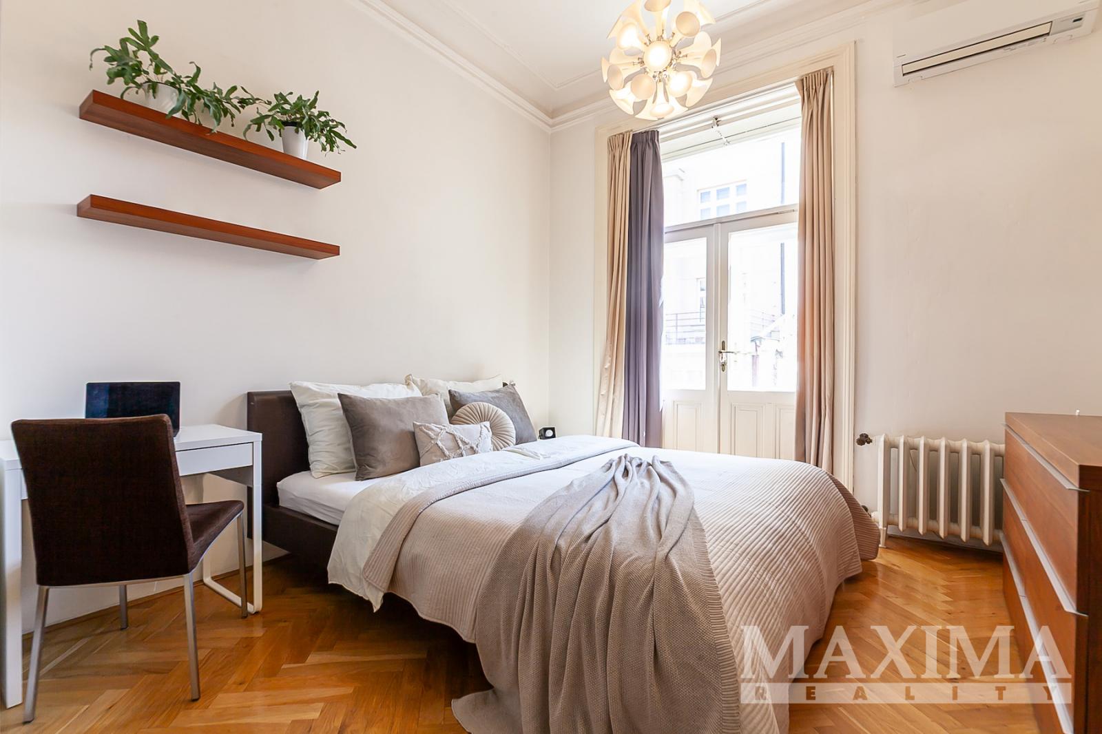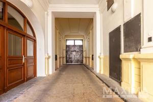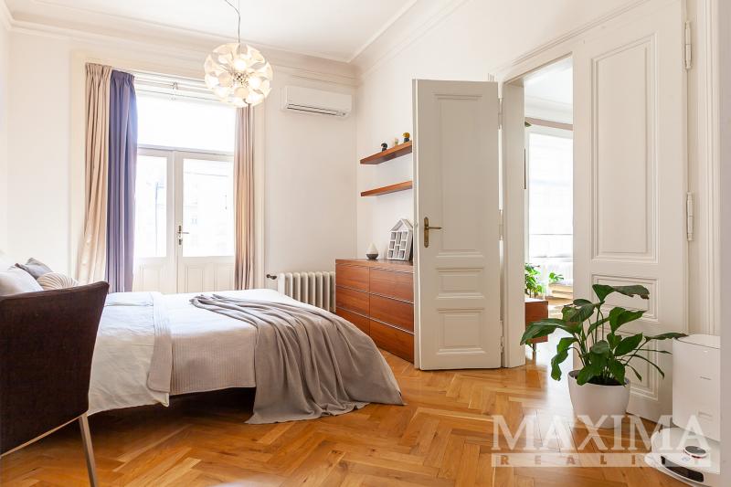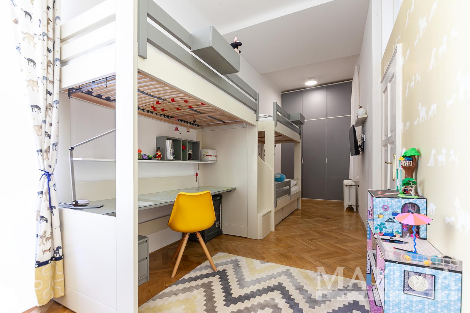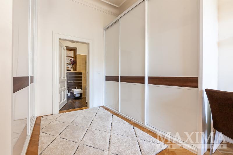 Byt o podlahové ploše 99,2 m2 doplňuje balkonek o velikosti 0,9 m2 a prostorný sklep 7,1 m2, což dohromady nabízí 107,2 m2 užitné plochy včetně příslušenství. Umístěn je ve 2. patře dobře udržovaného historického činžovního domu, který prošel revitalizací. Interiér samotný rovněž prošel nákladnou rekonstrukcí s důrazem na zachování původních architektonických prvků, jako jsou vysoké stropy, a zároveň nabízí moderní design s vybavením nejvyšší kvality, včetně klimatizace a krbu, který navozuje útulnou atmosféru. Jižní orientace bytu zajišťuje dostatek denního světla po celý den.