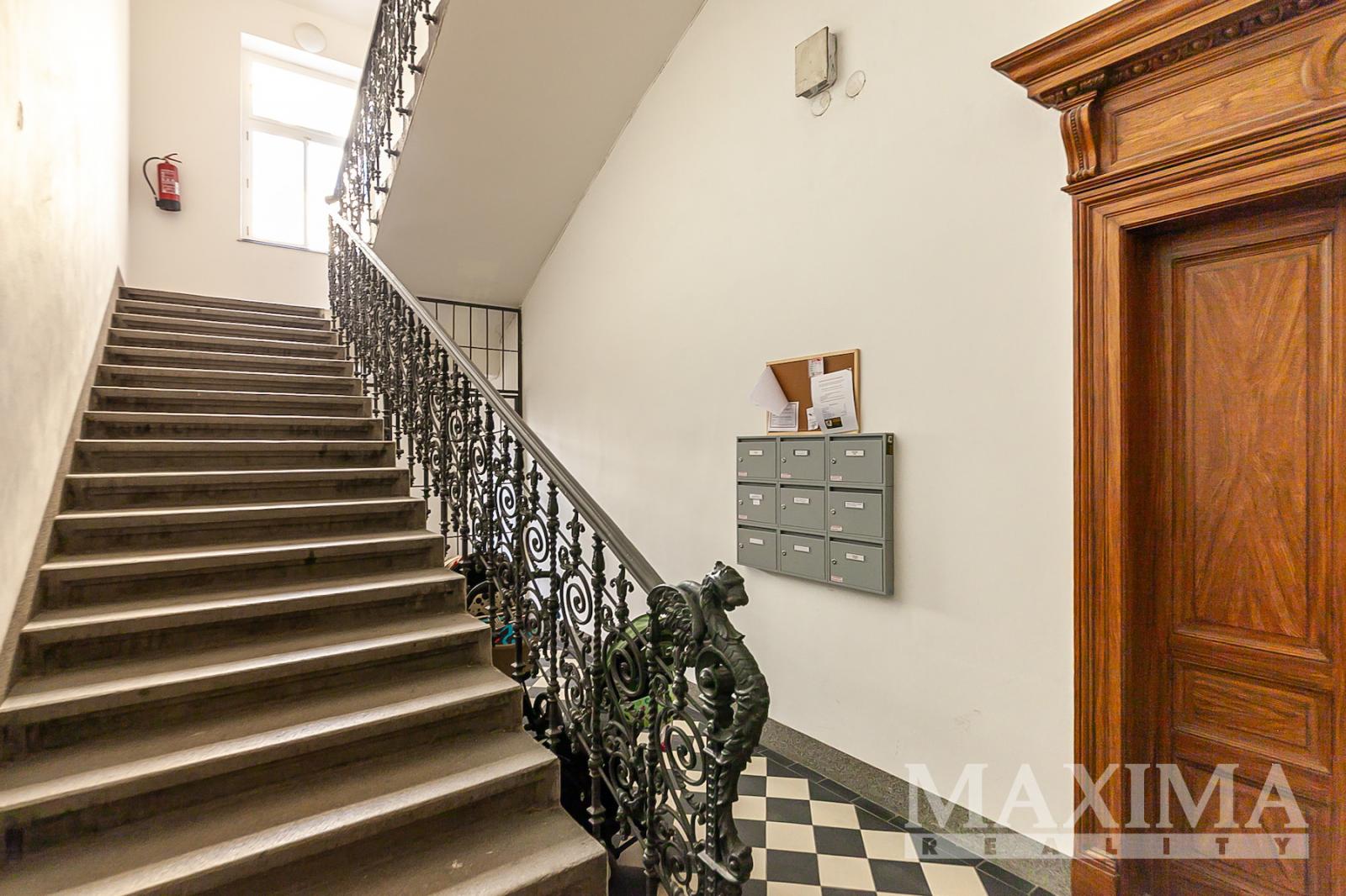 Historický dům má opravenou fasádu, střechu i sklepní prostory. K bytu náleží prostorný sklep a možnost parkovací stání ve vnitrobloku. SVJ funguje velmi dobře a příjmy do fondu oprav získává mj. z pronájmu nebytových prostor.