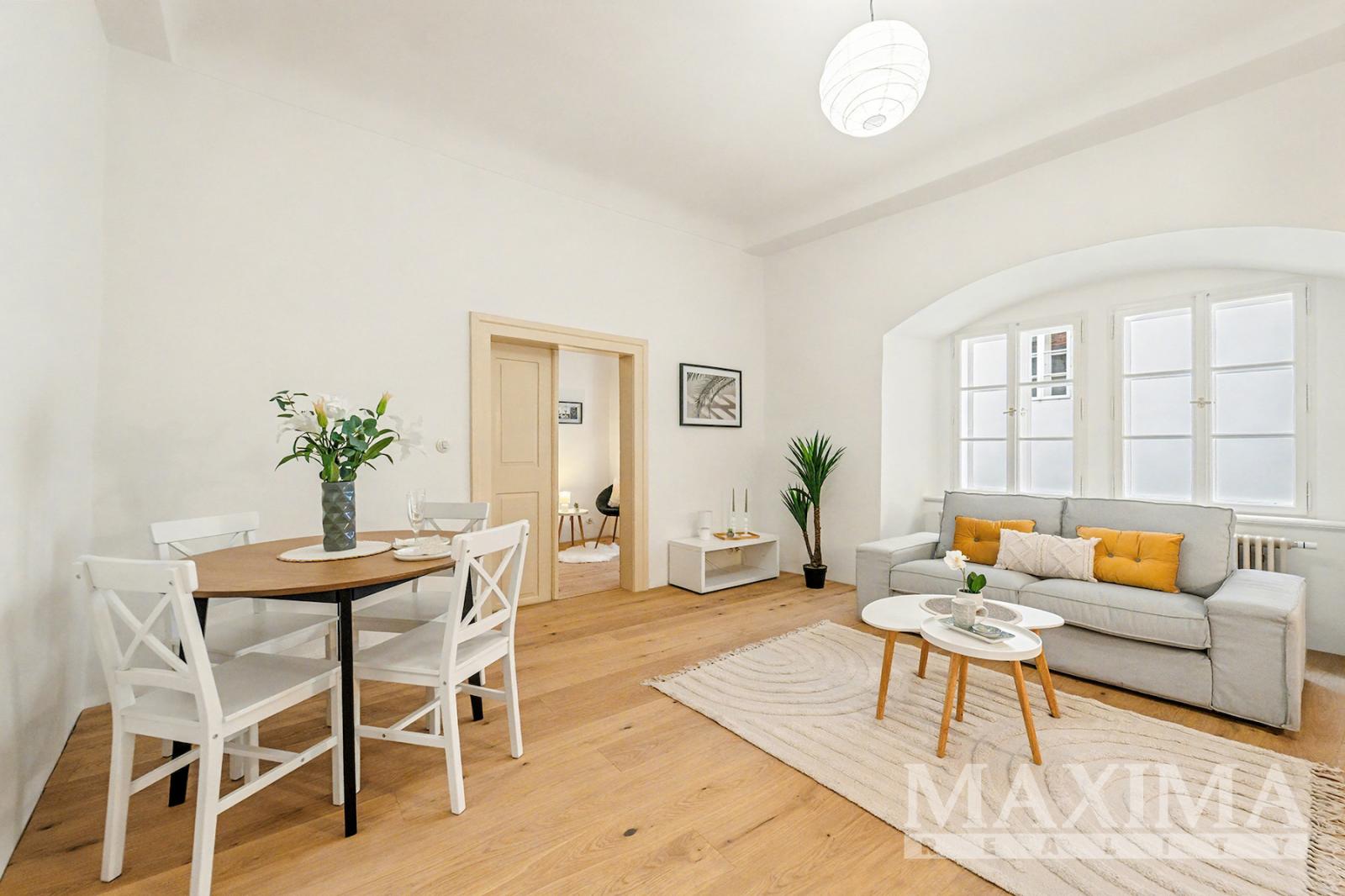 V samotném srdci historické Malé Strany, jen pár kroků od Malostranského náměstí, nedaleko Karlova mostu či romantické Kampy, nabízíme k prodeji výjimečný byt o dispozici 4+kk s celkovou užitnou plochou 128,3 m2. Nachází se ve druhém patře udržovaného třípatrového historického domu v klidné ulici Tomášská, pouhých pět minut chůze od stanice metra linky A - Malostranská.