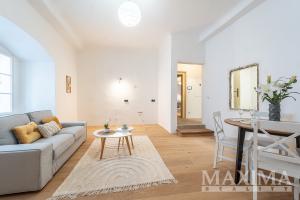 Variabilní dispozice bytu umožňuje jak využití jako prostorného 4+kk, tak i rozdělení na dvě samostatné jednotky 2+kk o velikosti 57,9 m2 a 48,7 m2 se společným vstupem. Tato kombinace výjimečné polohy, vysokého standardu bydlení a flexibilní dispozice z něj činí ideální volbu jak pro vlastní bydlení, spojení vlastního bydlení a podnikání (například jako reprezentativní kancelář v jednom z bytů), tak také jako investici k pronájmu v historickém centru metropole.