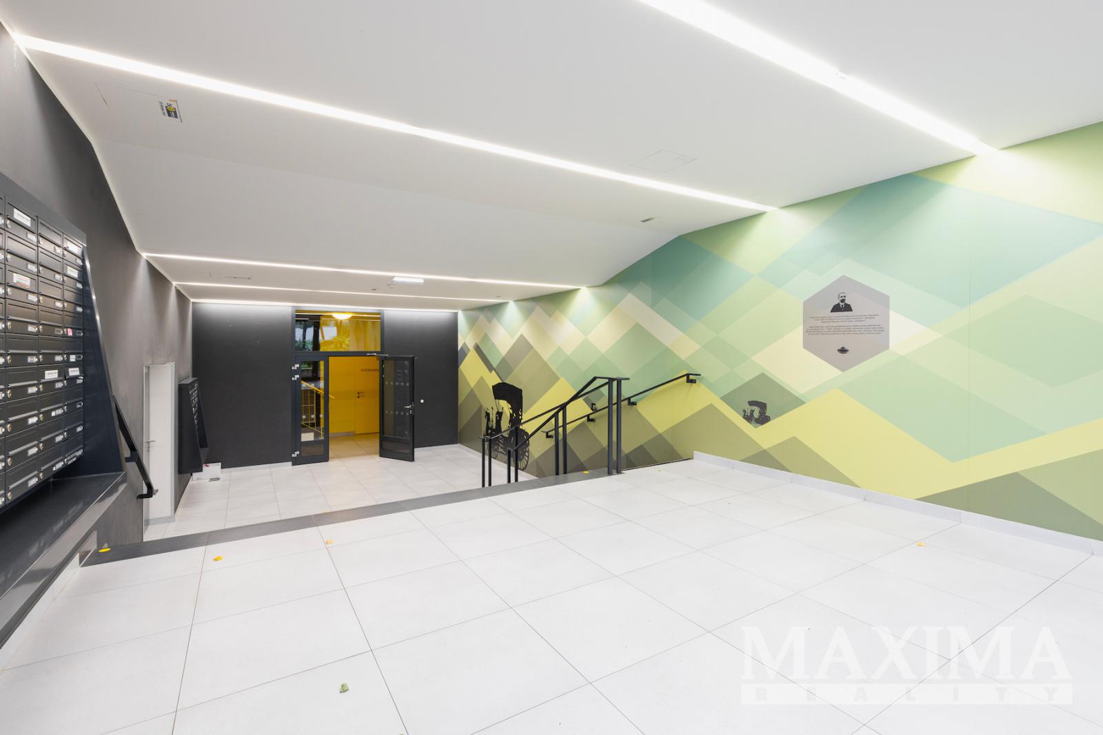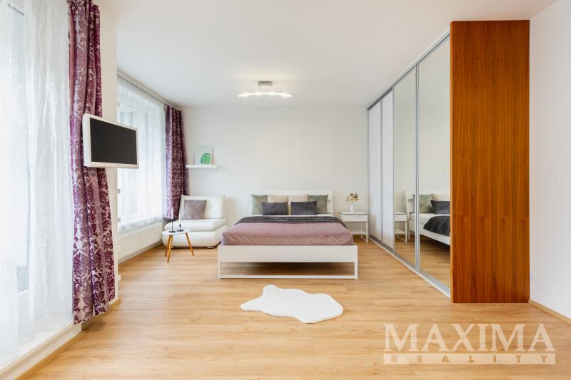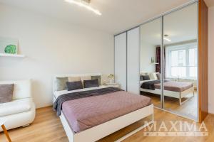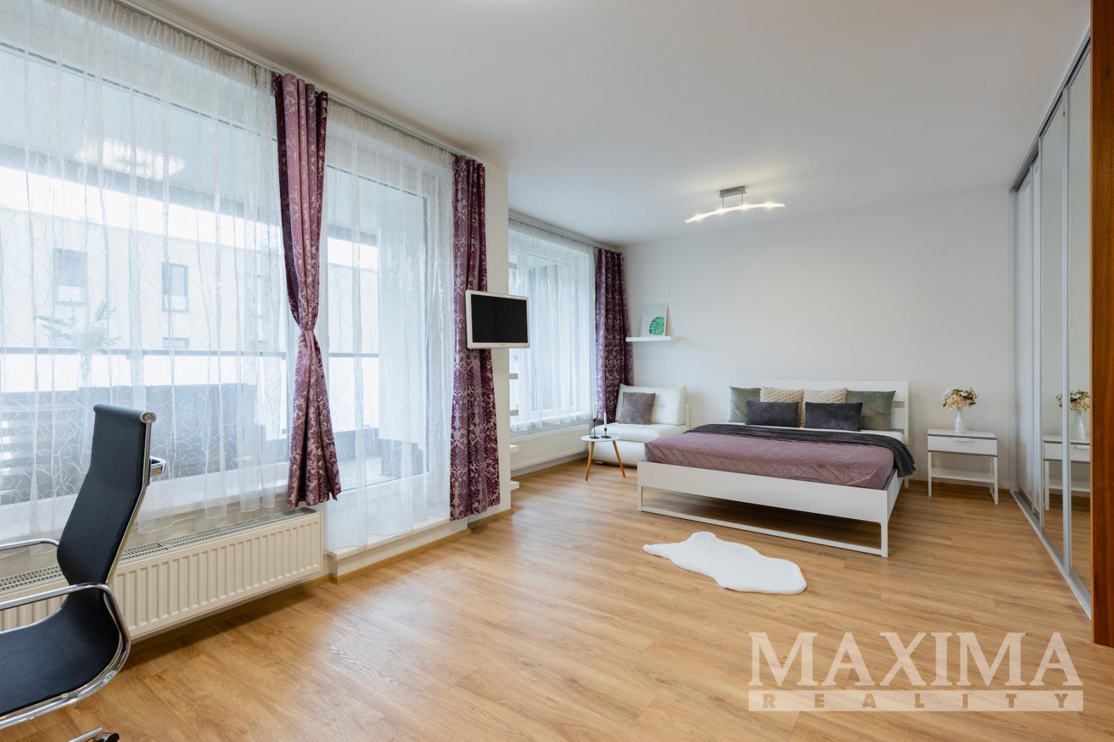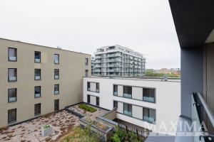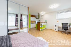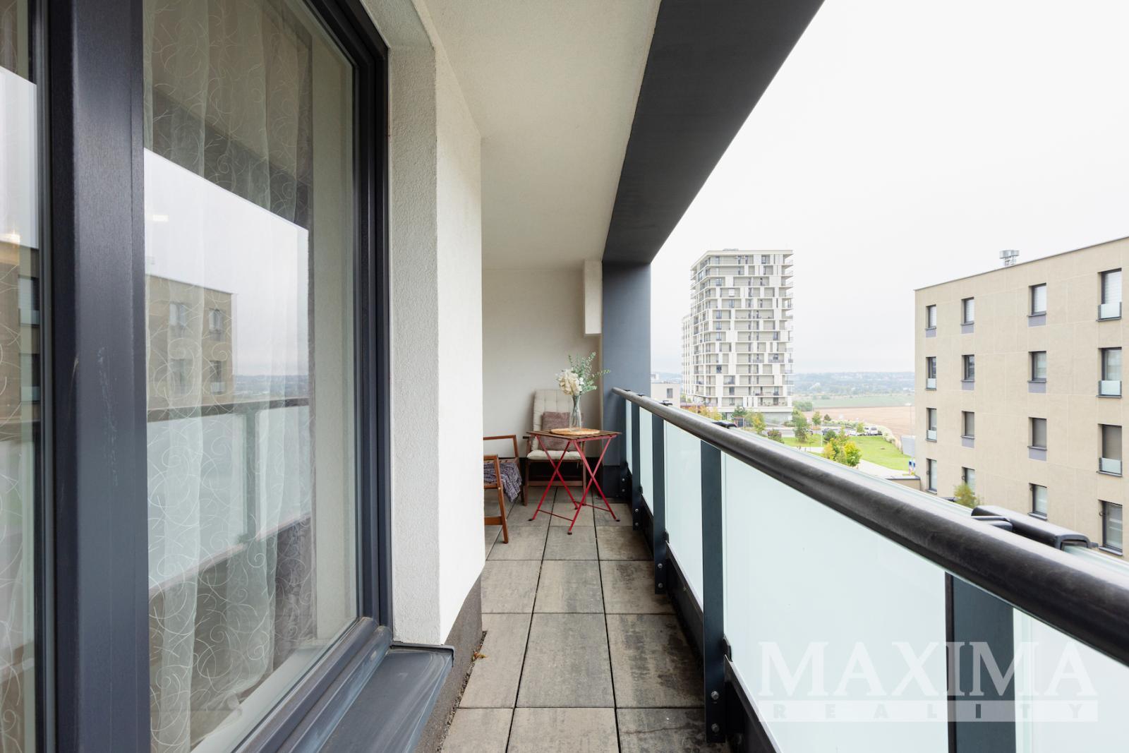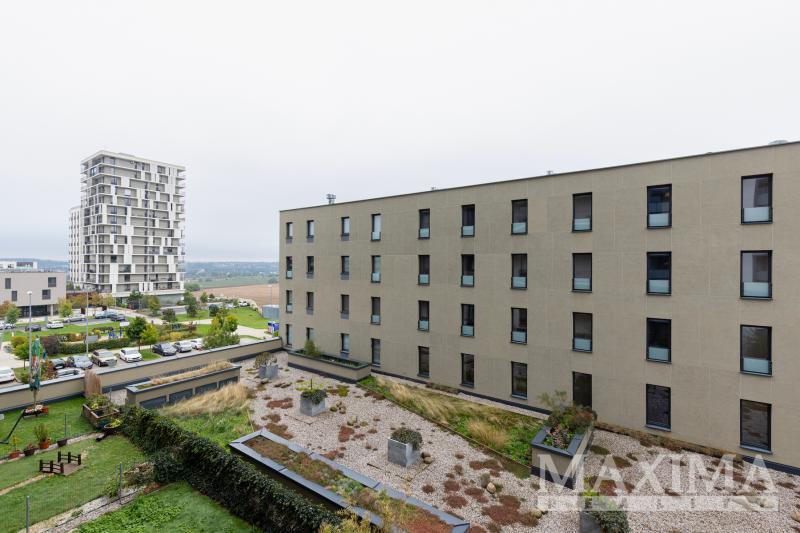 Exkluzivně nabízíme ke koupi byt s garážovým stáním. Byt je dispozice 1+kk o ploše 48 m2 s lodžií (8 m2), nacházející se ve 4. podlaží moderního 17patrového domu s výtahem a bezbariérovým přístupem. Byt byl původně koncipován jako 2+kk, ale příčka mezi ložnicí a obývací částí byla v projektu odstraněna, čímž vznikl světlý a otevřený obytný prostor se dvěma okny - případné budoucí rozdělení je tedy snadné, ale aktuální dispozice působí velmi vzdušně.