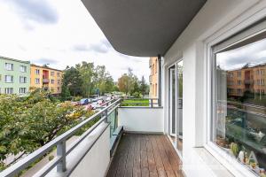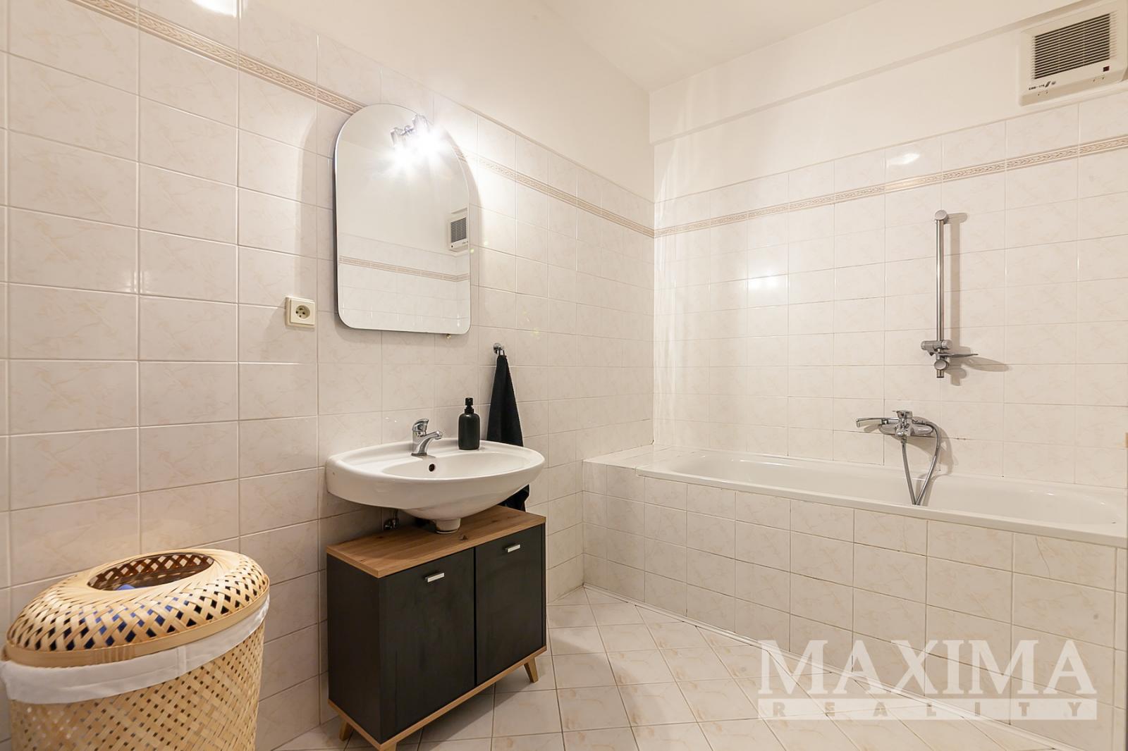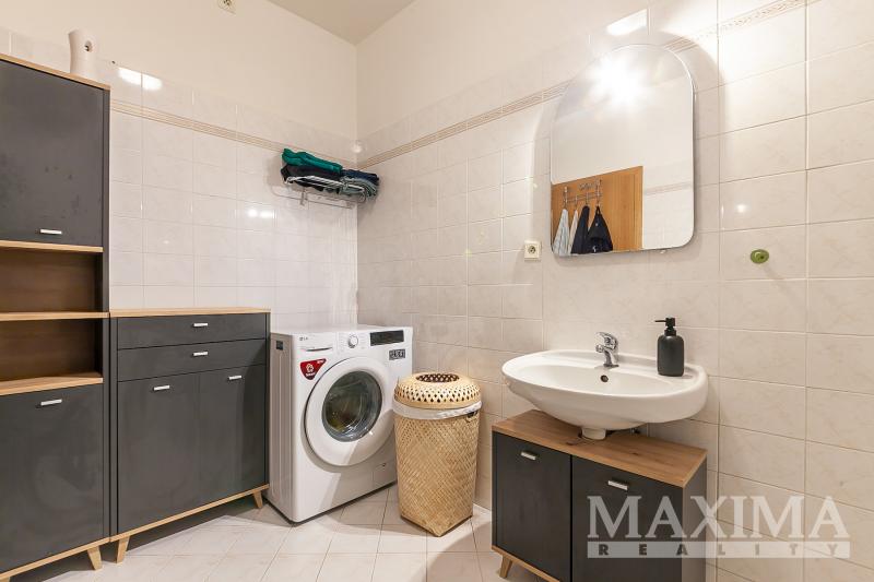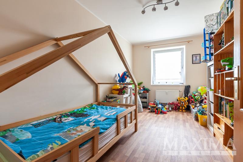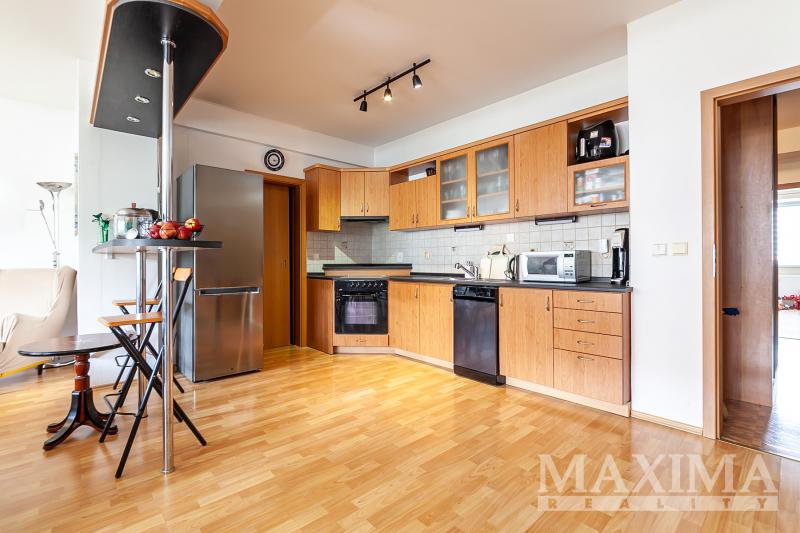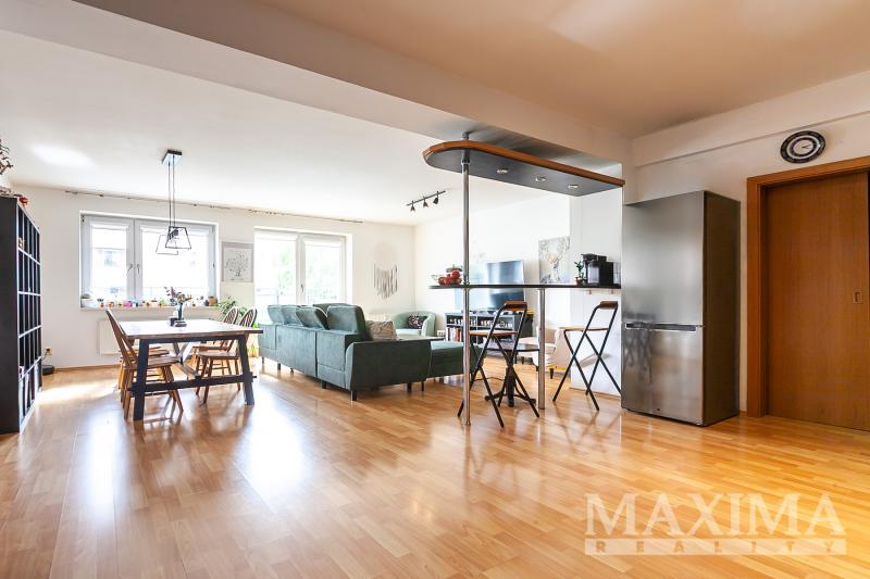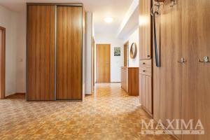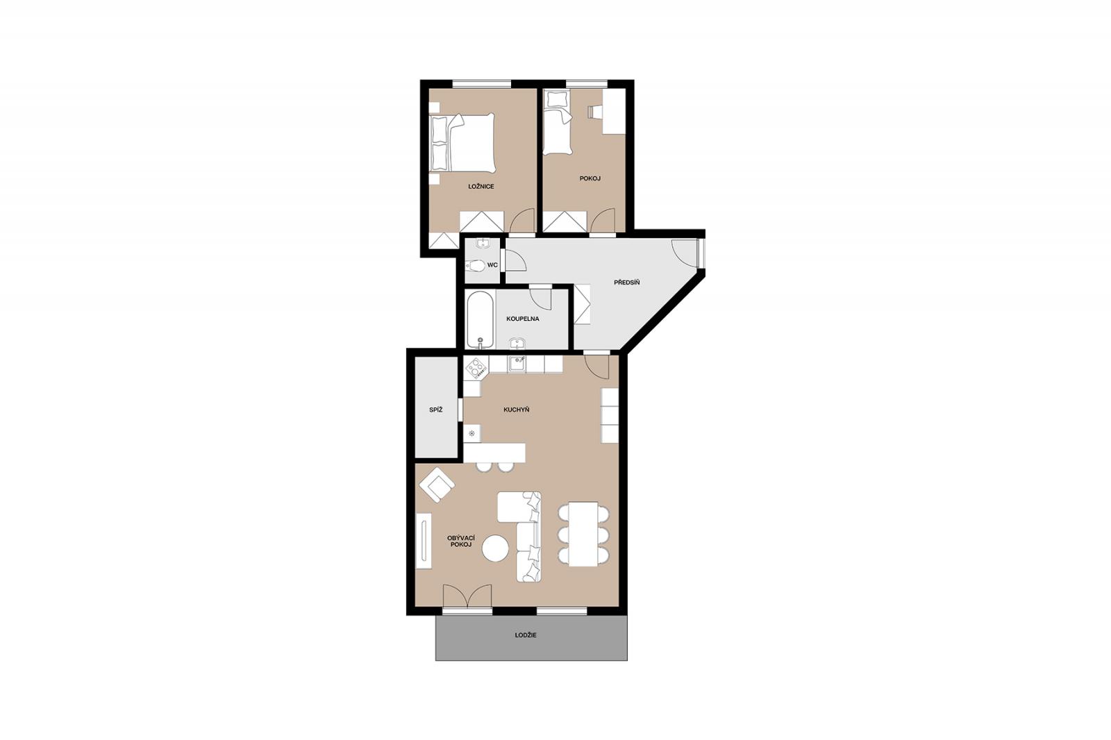 Tento byt zaujme svou velkorysou dispozicí. Dominantou je prostorný obývací pokoj s kuchyňským koutem o velikosti 43,3 m2 a přímým vstupem na terasu 6,3 m2, s orientací na jih, která zajišťuje dostatek denního světla po celý den. Součástí kuchyně je prostorná komora 4,2 m2. Dvě samostatné ložnice o velikosti 15,8 m2 a 11,9 m2 orientované na sever nabízejí klidné a příjemné prostředí pro odpočinek nebo práci. K dispozici je prostorná koupelna s vanou a WC o velikosti 8,5 m2 a chodba 14,7 m2 s dostatečným úložným prostorem.