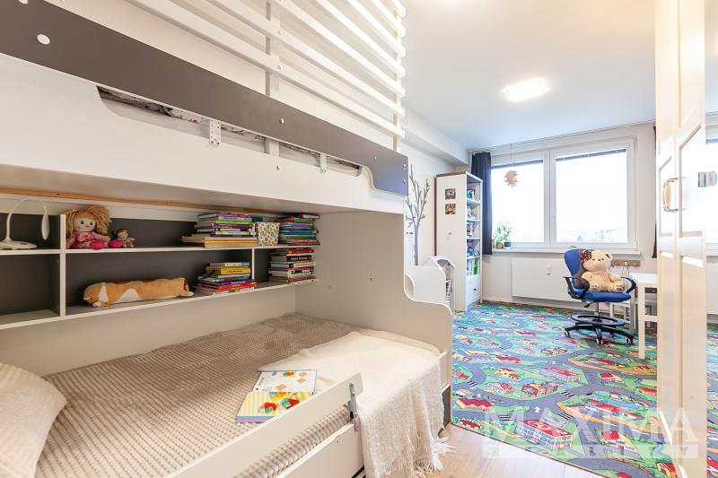 Intimní klidová zóna: 2 ložnice (17,22 m2 a 17,22 m2) a koupelna (5,44 m2) s toaletou.