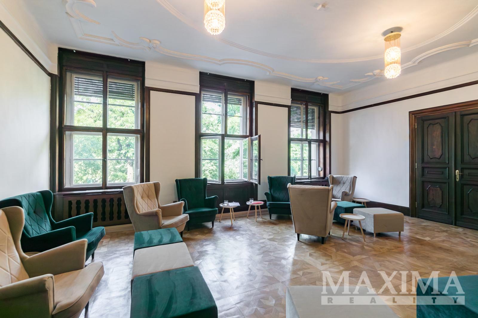 Nabízíme k pronájmu výjimečné prostory v historické budově Ringhofferově paláci v lokalitě Praha 5, v těsné blízkosti OC Smíchov. Jedná se o samostatné, uzamykatelné křídlo o celkové ploše 191m2, celkem 4 místnosti (47m2, 33 m2,18 m2 a 26 m2, chodba, WC, samostatná kuchyňka a samostatný vstup. K dispozici jsou místnosti libovolných rozměrů a s různou orientací ke světovým stranám. Některé části budovy jsou zařízeny v původním exkluzivním stylu; např. mahagonové obklady dveří, stěn a schodiště, látkové tapety na stěnách, funkční mramorové krby, balkony apod. Ve všech místnostech bude probíhat výměna koberců, vymalování. Pro nájemníky je zajištěno v omezené míře rezidenční parkování ve dvoře. K parkování lze však využít i podzemní garáže v areálu Nový Smíchov, který se nachází naproti Ringhofferovu paláci. Nájemné je bez dph. V zálohách na služby je zahrnuto i DPH. Je možné vyhovět i zájmu o prostory v suterénu budovy, které jsou vhodné např. pro příruční sklady, archiv apod. Recepce 24/7. Ostraha v budově. Vřele doporučujeme prohlídku těchto výjimečných prostor. Volné od 1.9.2025.