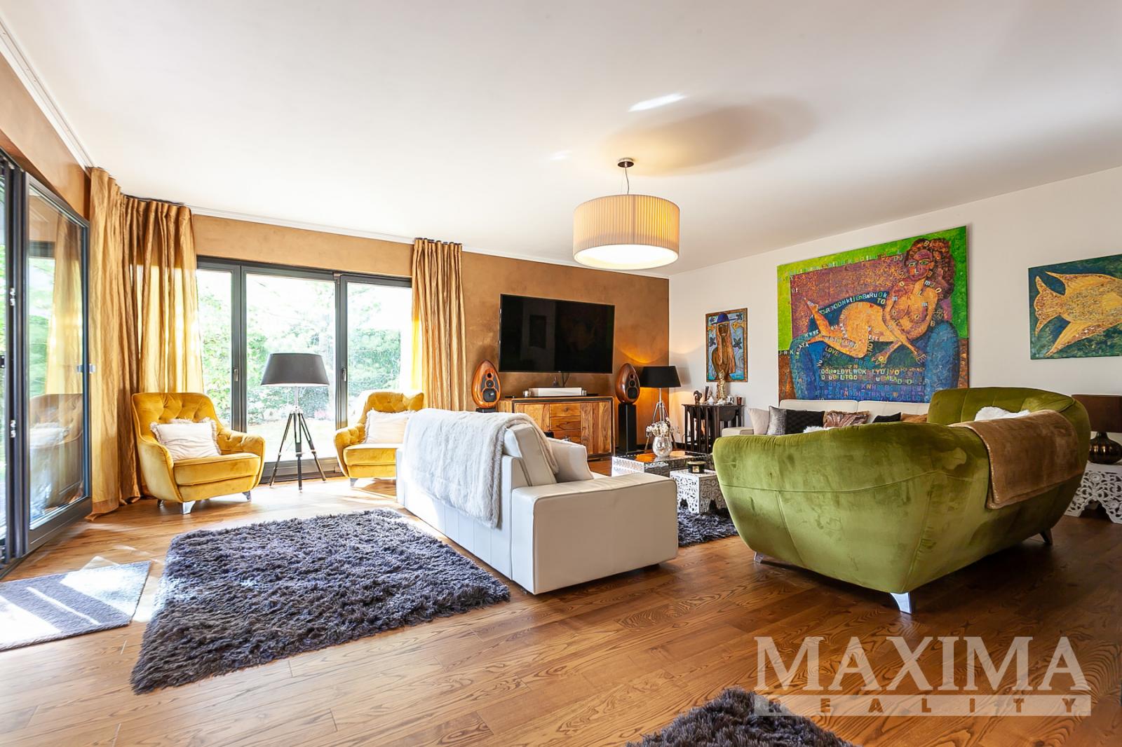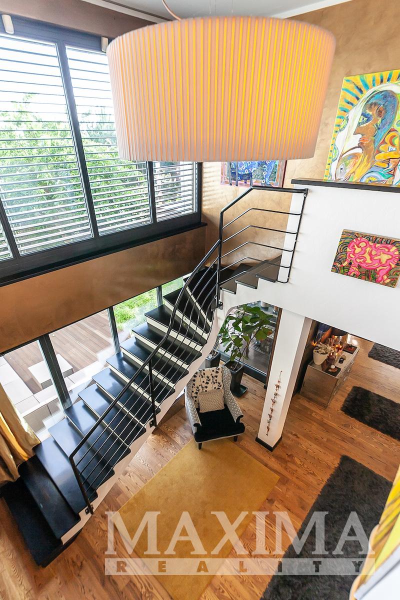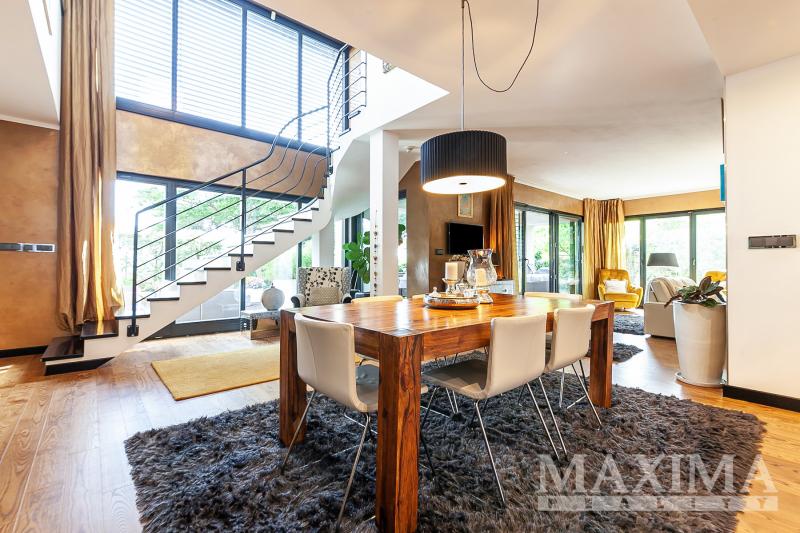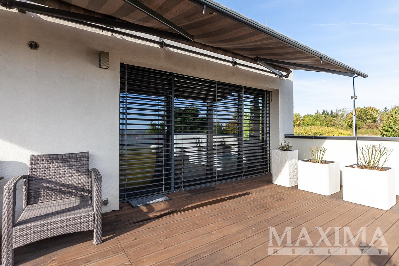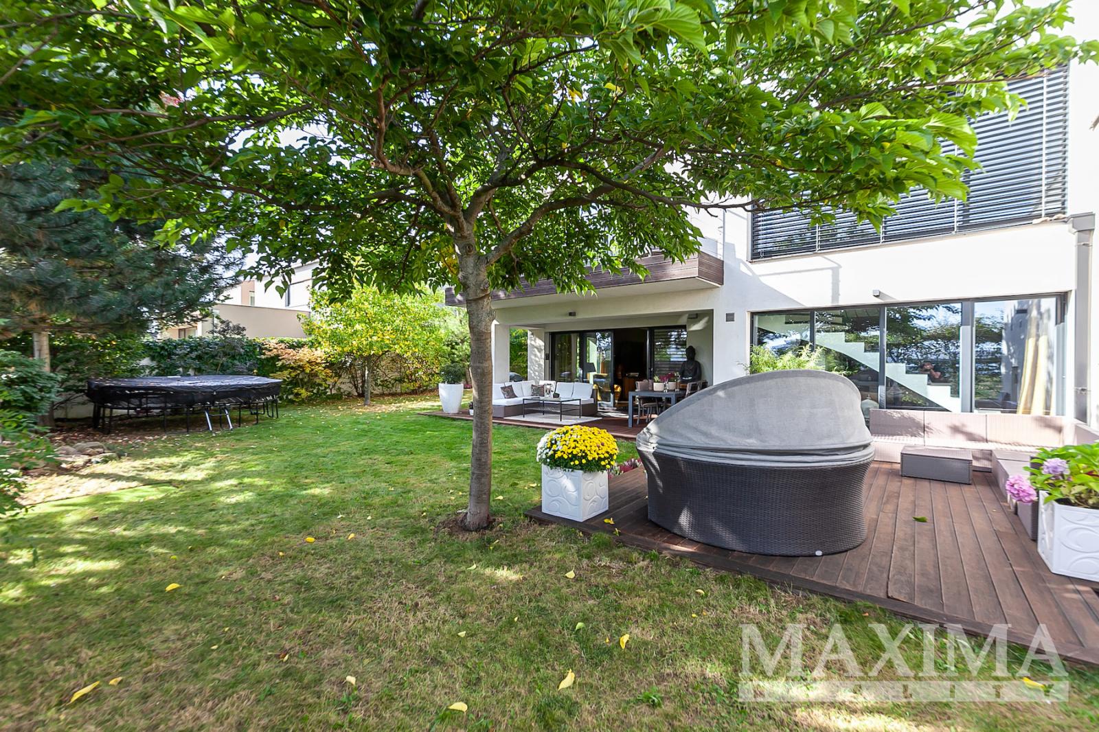 Ve výhradním zastoupení majitele nabízíme exkluzivní rezidenci s vyváženou funkční a estetickou kvalitou, citlivě vkomponovanou na parcelu s naprostým soukromím, která je součástí prestižní komorní vilové zástavby v lokalitě Višňovka. Osloví Vás atmosféra decentního luxusu, elegantního nadčasového designu, jedinečný výhled, klid a soukromí i promyšlené provozně dispoziční řešení a perfekcionistické provedení nemovitosti od konceptu po detail. Dispozice vily, 5+kk se systémem teras, 3 garážemi, 3 koupelnami, 3 WC, technickou místností a dalším zázemím, je rozložena ve 2 plnohodnotných podlažích. Prostorově velkorysý dům, s užitnou plochou 411 m2, těží z provázanosti interiéru s exteriérem: terasy poskytují výhledy (např. terasa o ploše 50 m2 ve 2. NP) i naprostou intimitu a soukromí (terasa v 1. NP vzhledem k půdorysnému tvaru domu i vzrostlé zeleni). Špičkové použité prvky a vybavení: zateplená odvětrávaná fasáda na nosném zdivu z Porothermu, benátské štuky, dřevěná okna s trojskly, elektricky ovládané žaluzie, klimatizace, podlahové topení, kamerový systém, víceokruhový alarm, osvětlení na čidla, internet optický kabel, vyhřívaný vjezd, osvětlení a automatické zavlažování zahrady, rezervoár na dešťovou vodu, aj. Na pozemku o rozloze 828 m2 profesionálně ztvárněná vzrostlá okrasná zahrada se vzácnými dřevinami, naprostým soukromím, docíleným tvarem domu, plným oplocením i vzrostlou zelení, dále např. zahradní domek a dostatečná zpevněná parkovací plocha přístupná několika vjezdy. Lze nabýt včetně movitého vybavení. Výjimečná nemovitost představuje reprezentativní, uživatelsky komfortní, moderní bydlení v rezidenční čtvrti v sousedství rezervace, současně s rychlou dostupností M i centra metropole. Hypotéka lze, rádi Vám zařídíme.