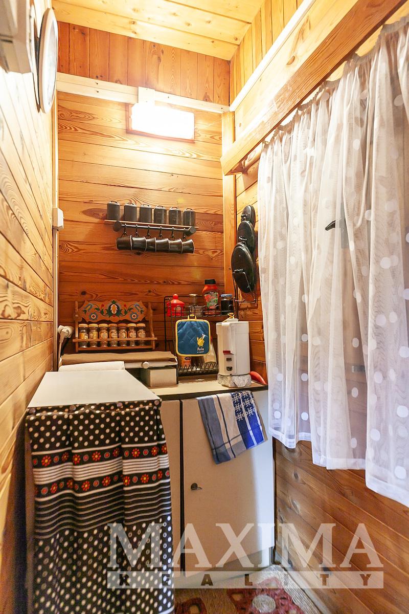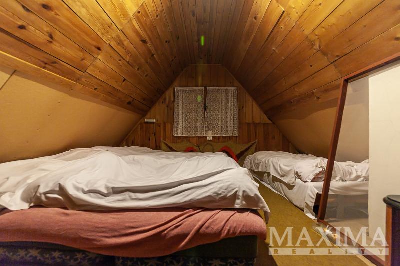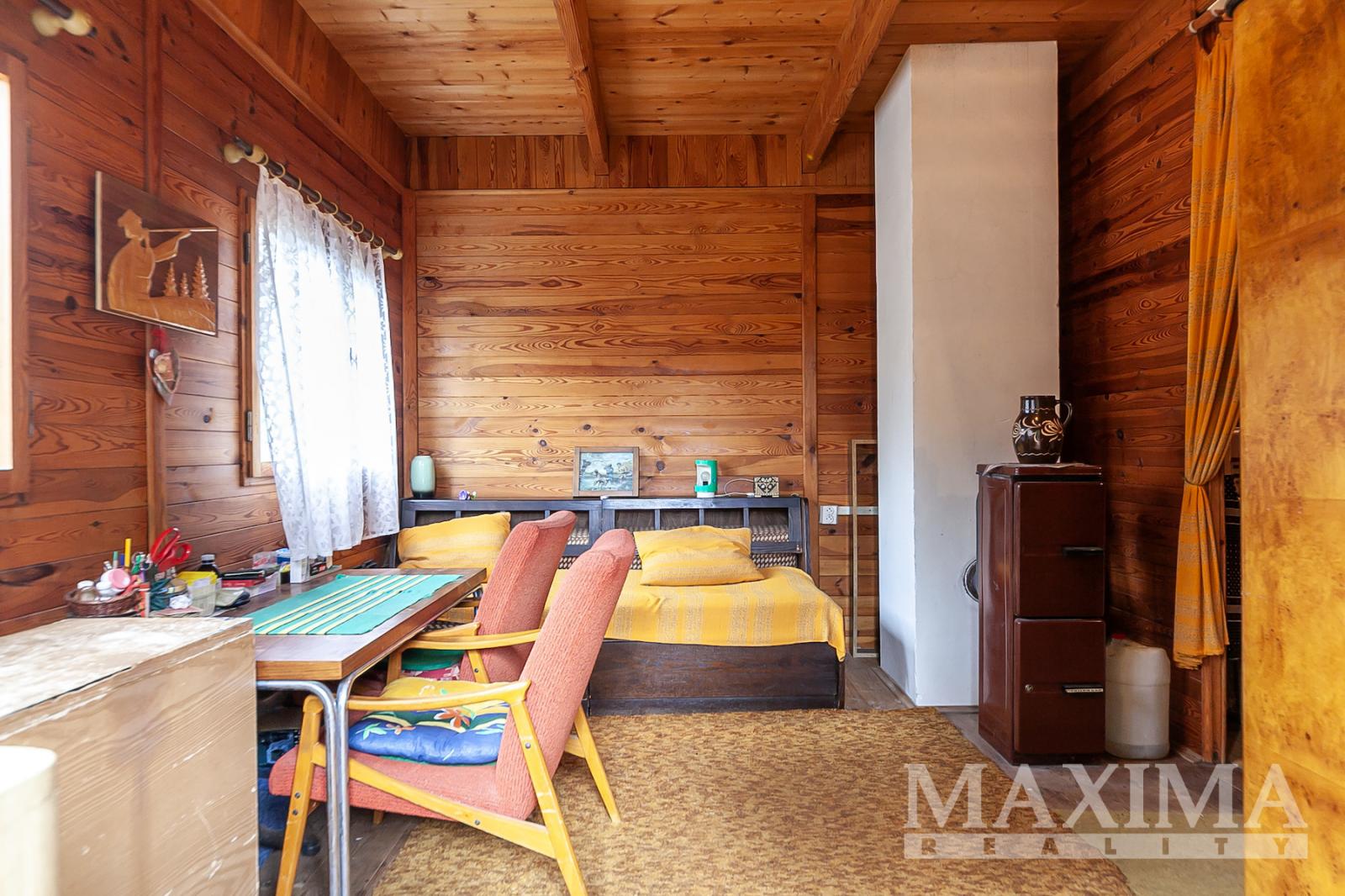 Suchý sklep chaty přístupný zvenčí je využit jako prostorný ukládací prostor. Dřevěná stavba nad zděným základem skýtá jednoduché zázemí s obývacím pokojem, kuchyňským koutkem, toaletou s umývadlem a ložnicí v podkroví. Chata je napojená na obecní vodovod a elektřinu. Na hranici pozemku najdete plynovou přípojku, odpady jsou řešeny jímkou. O teplo se v chladnějších dnech starají kamna na tuhá paliva.