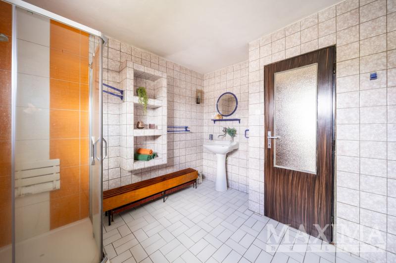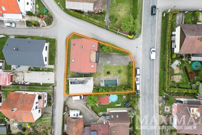 K dispozici je také prostorná dvougaráž přístupná z ulice a stále funkční bazén s protiproudem určený k rekonstrukci. Dům má dvě terasy a balkón, je osazený plastovými okny orientované převážně na jihovýchod.