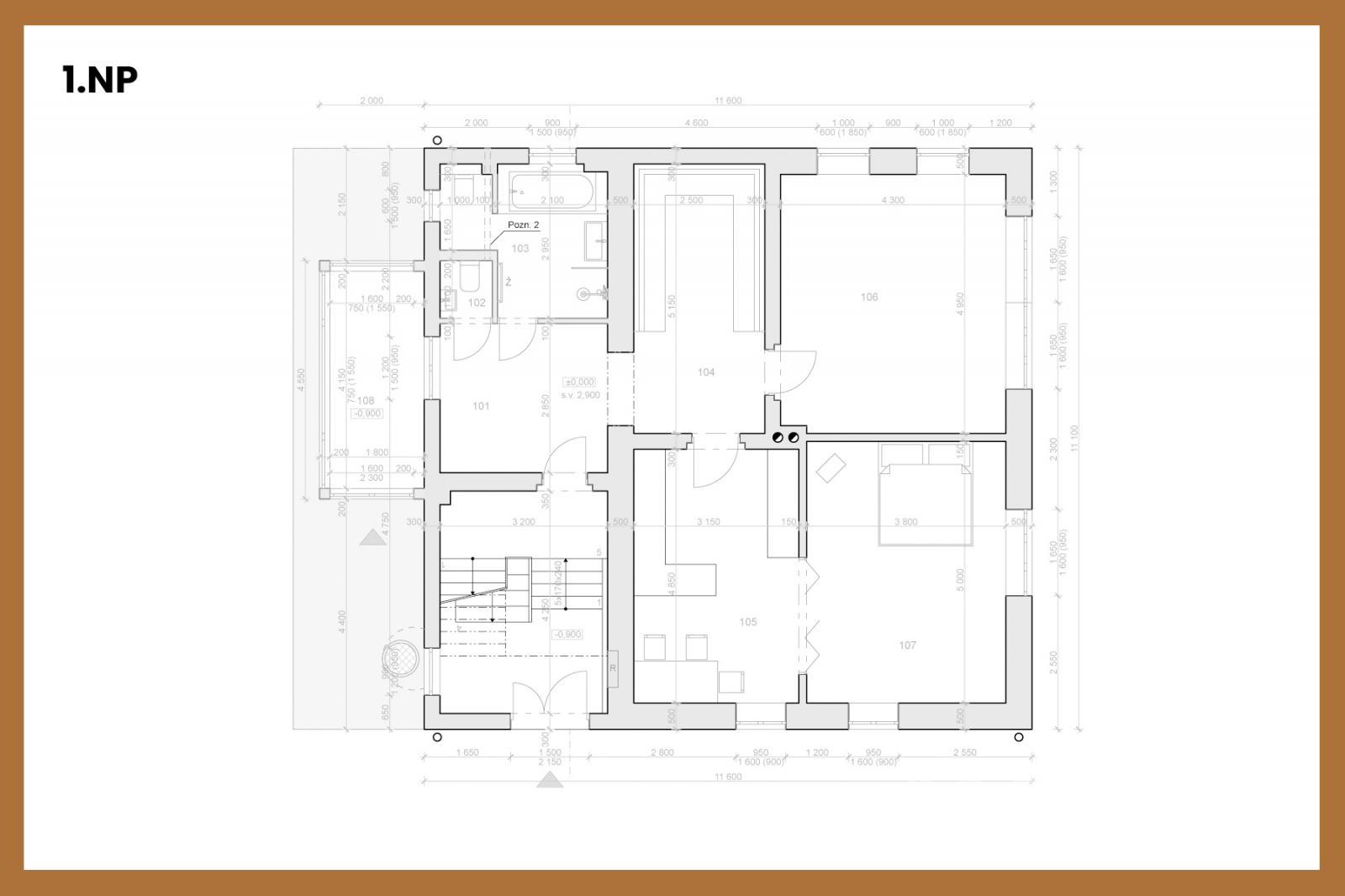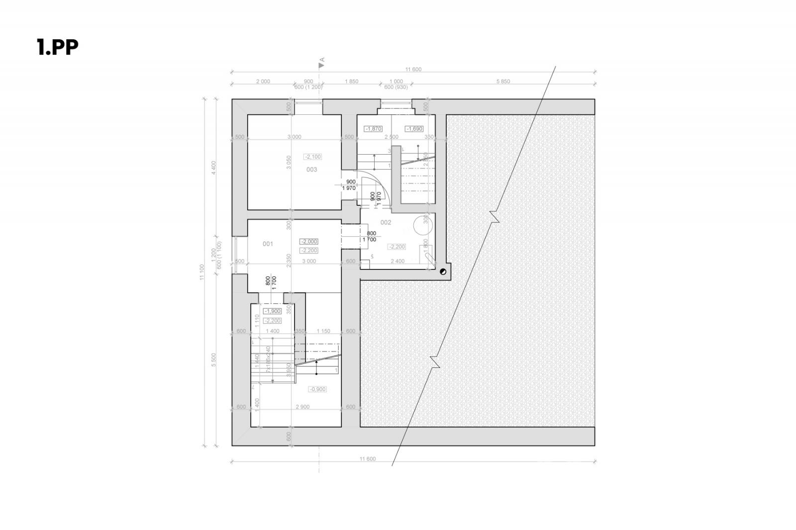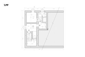 - 1.PP: sklep s technickým zázemím (~30 m2)