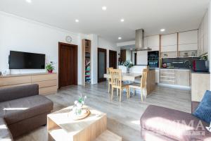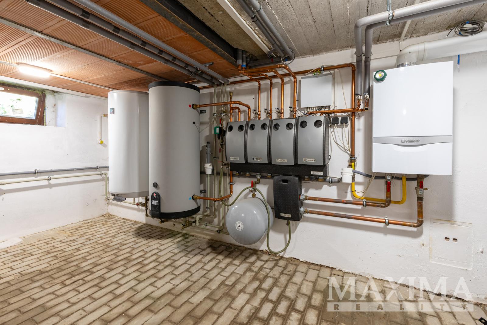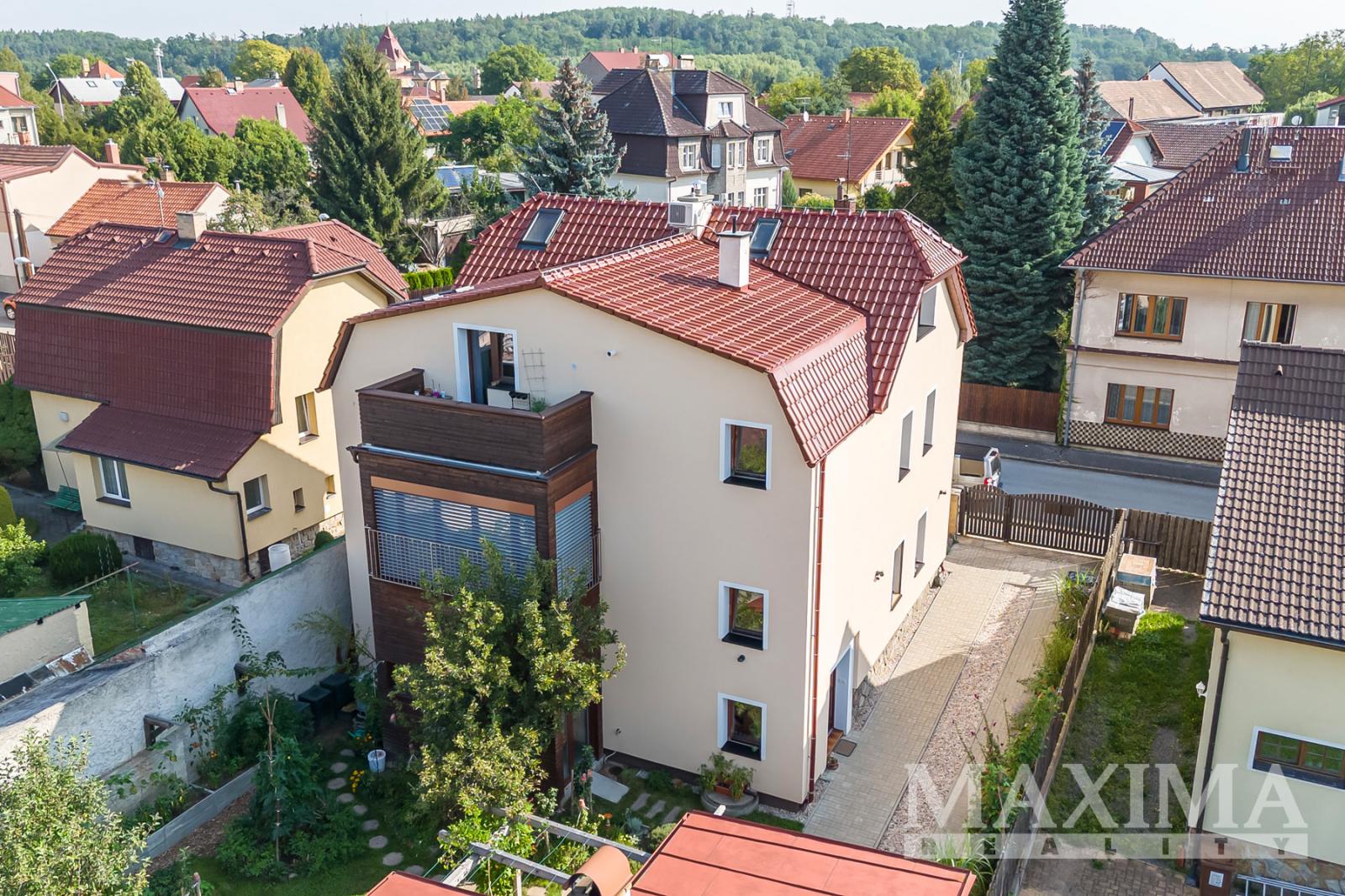 - Technologie: moderní plynový kondenzační kotel, podlahové i klasické topení, samostatná regulace v každém patře, klimatizace s možností chlazení i přitápění ve všech bytech, příprava na fotovoltaiku
