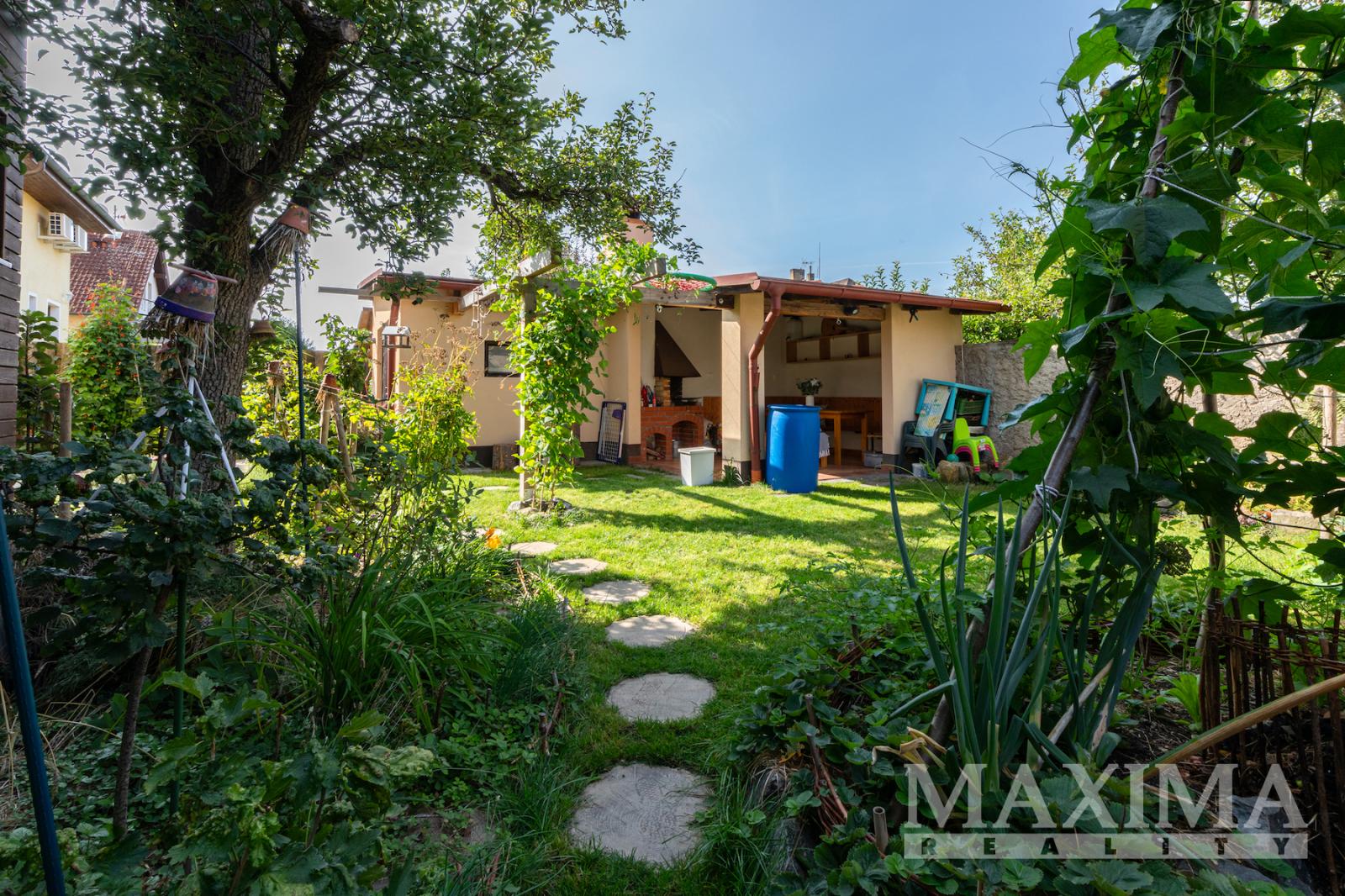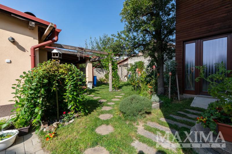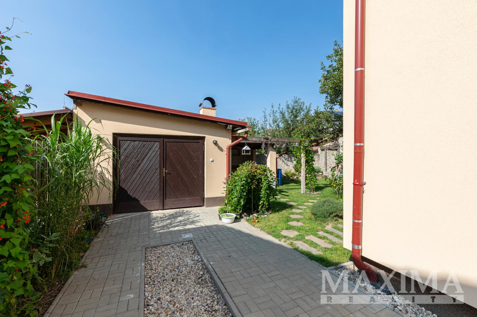 - Parkování a pozemek: zahrada se zastřešeným posezením a krbem, místnost pro kola/nářadí, garáž, parkování na pozemku i před domem (až 3 vozy)