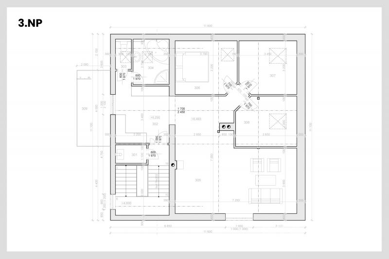 - 2.NP: byt 3+kk se zimní zahradou (~95 m2)