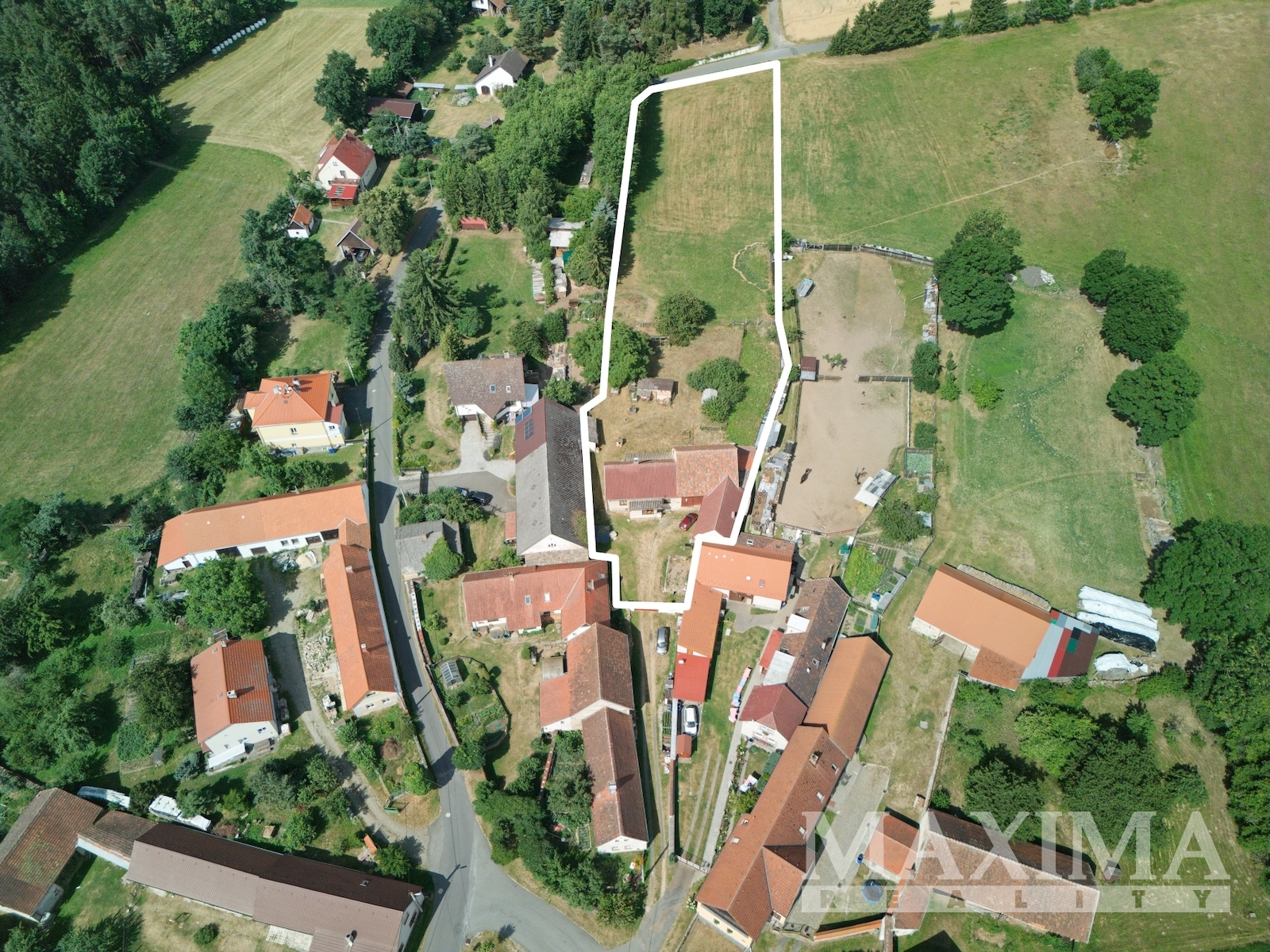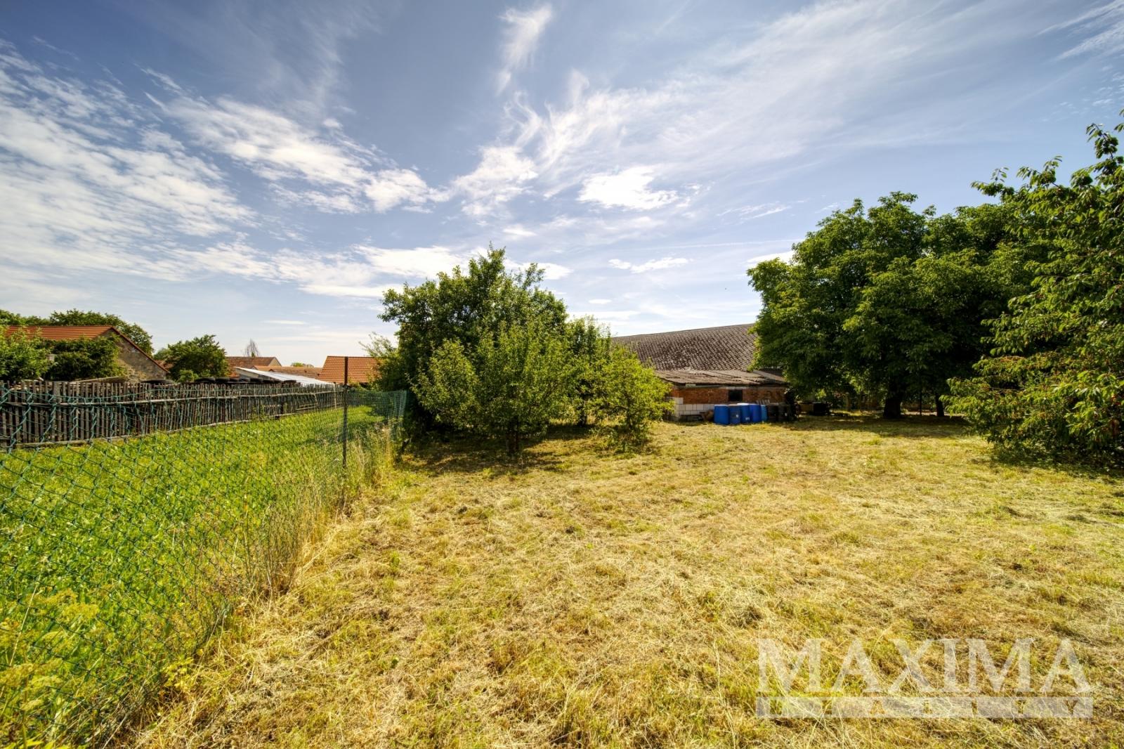 Na zahradu navazuje travnatý pozemek, využitelný jako pole, které nabízí další možnosti pro zemědělskou činnost nebo jako pastvina pro koně.