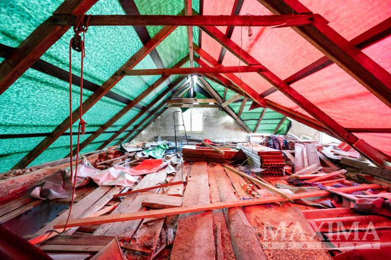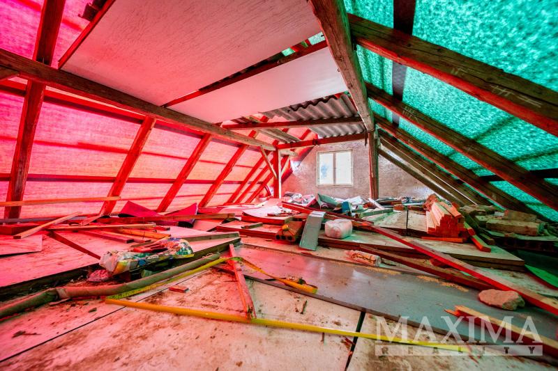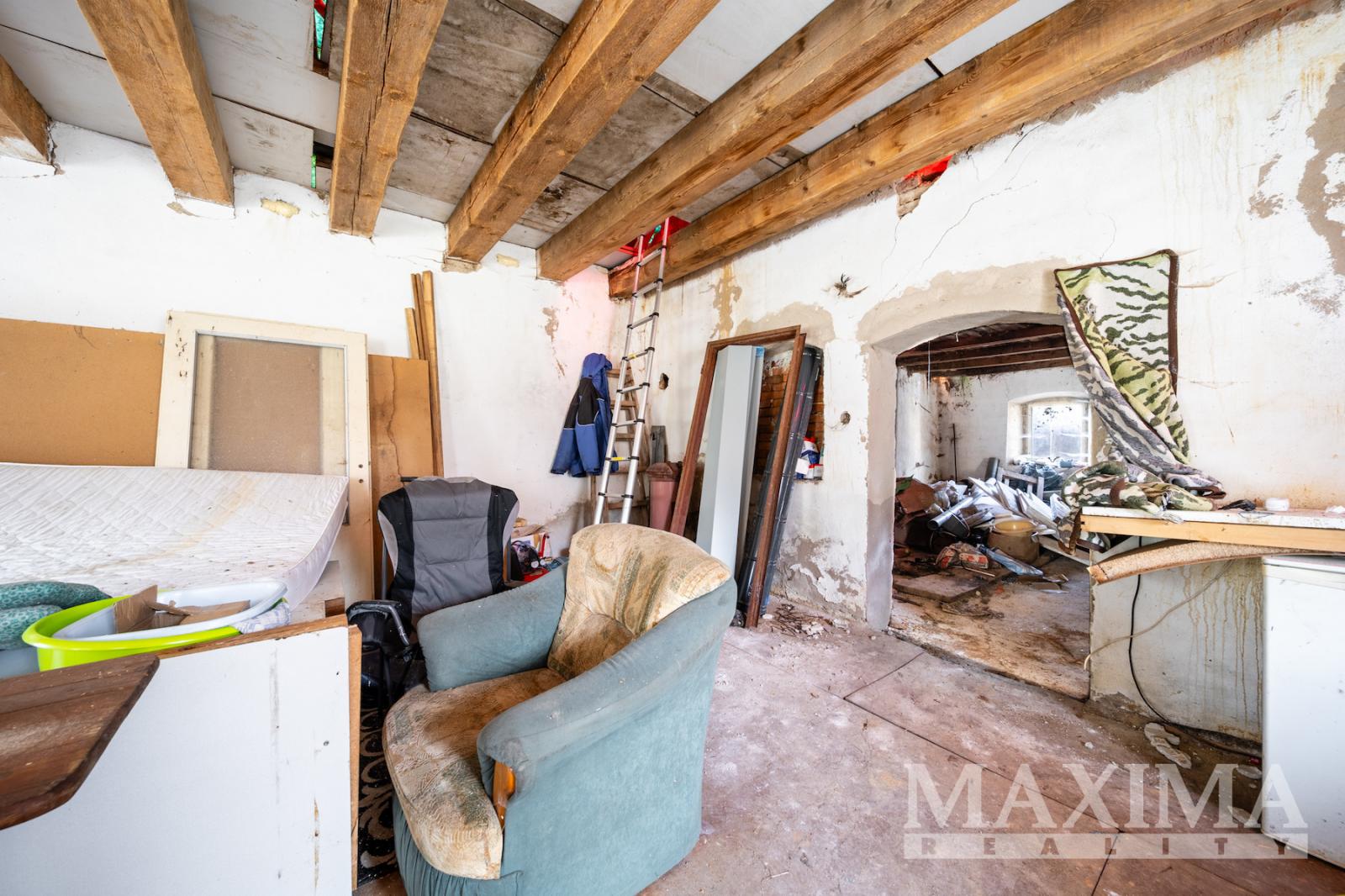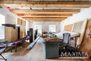 Dům o zast. ploše 124m2 je nyní dispozičně rozdělen na 2 větší pokoje, které rozděluje komín s ideálním místem pro krbová kamna. V přední části domu došlo již k výměně stropních trámů za masivní dřevěné trámy o vel. 30x30cm. Krov vyžaduje částečnou rekonstrukci, která by umožnila vybudování obytného podkroví.