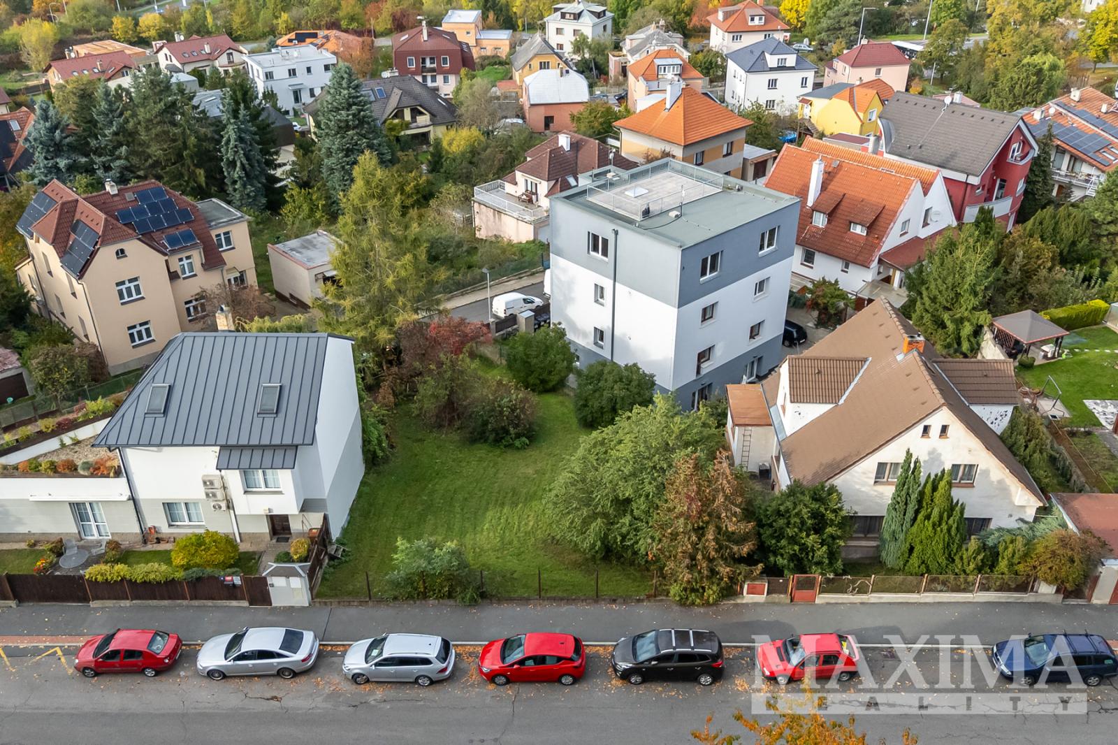 Ve výhradním zastoupení majitele nabízíme do prodeje stavební pozemek o celkové výměře 401m2. Budoucí situování vstupů a vjezdu na tento pozemek je jak z ulice Platónova, tak i z protilehlé Větrovcovy ulice, přičemž vjezd do budoucí garáže či garáží se nabízí především z ulice Větrovcovy. Orientace pozemku je v podélném směru sever a jih.
